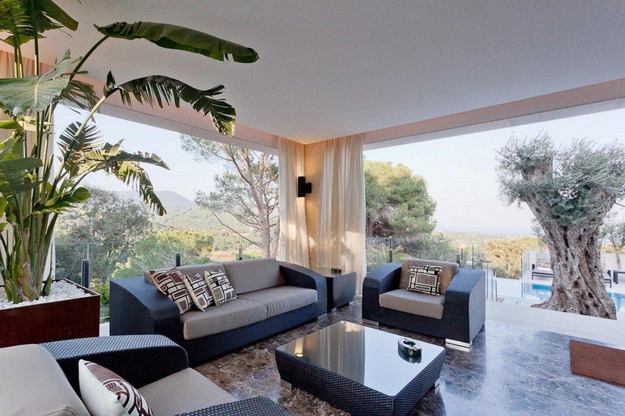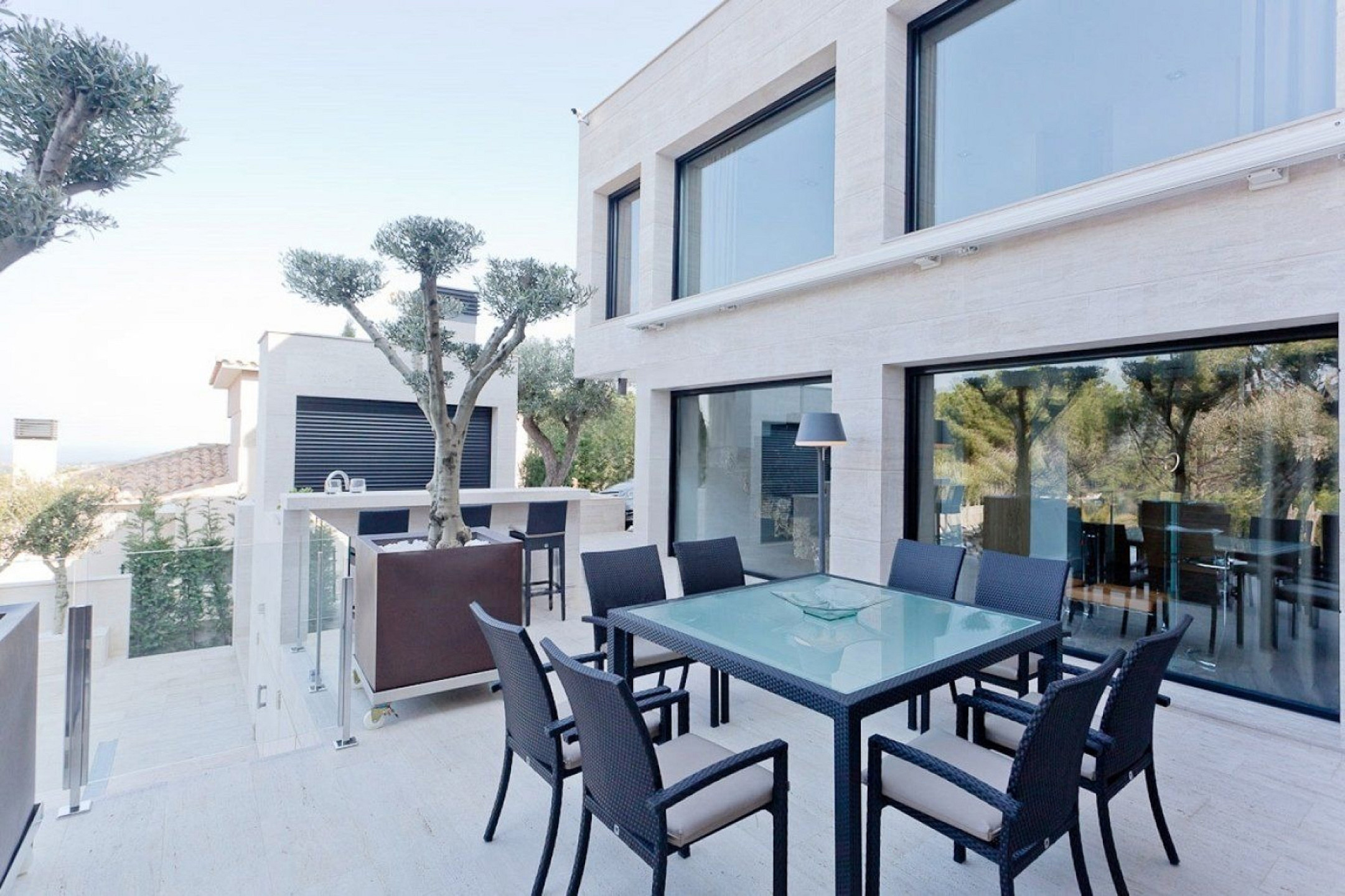 Внешние пространства играют ключевую роль и включают большие террасы, частный подогреваемый бассейн и зону барбекю, созданные для комфортного отдыха и наслаждения окружающей средой.