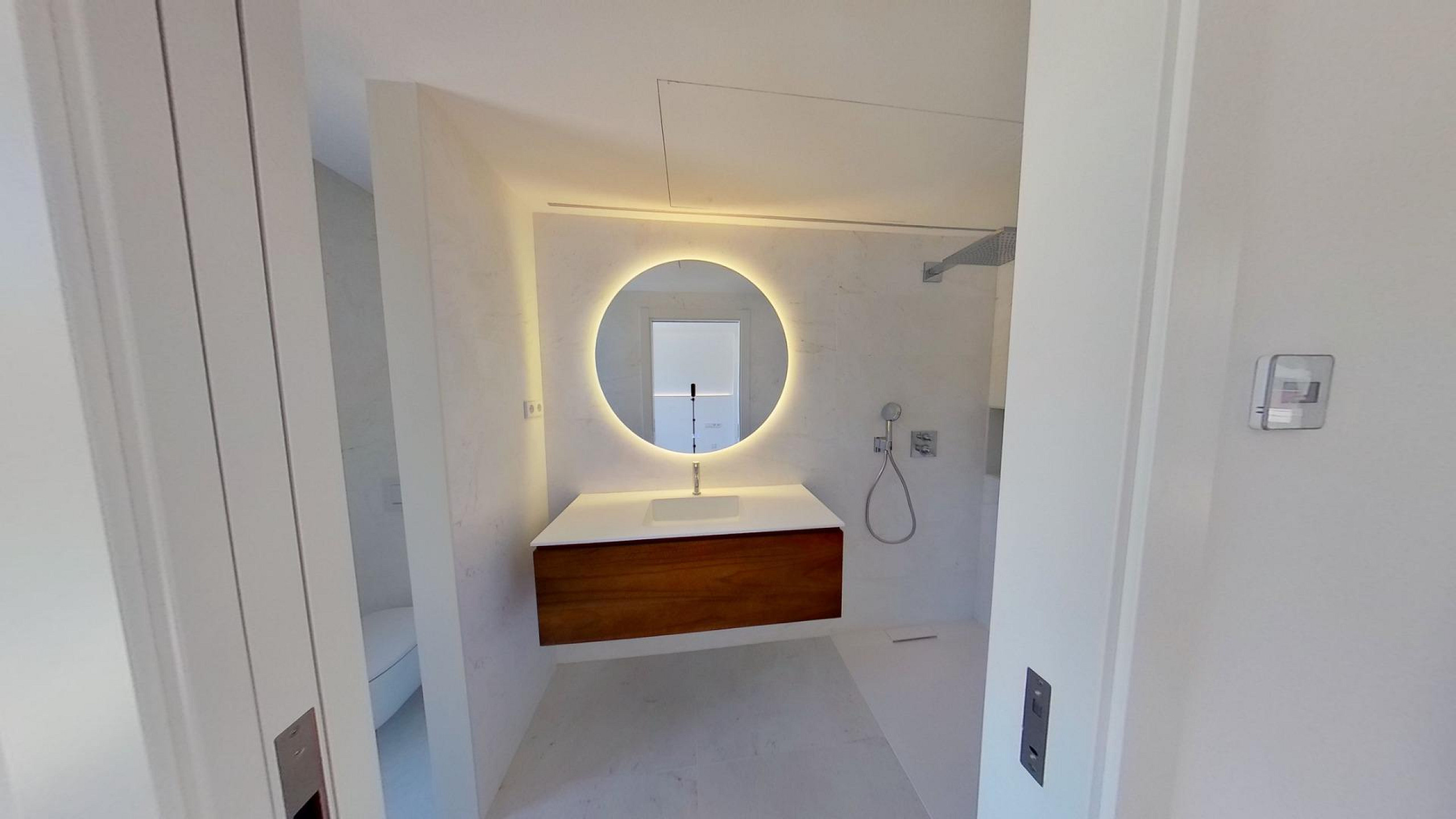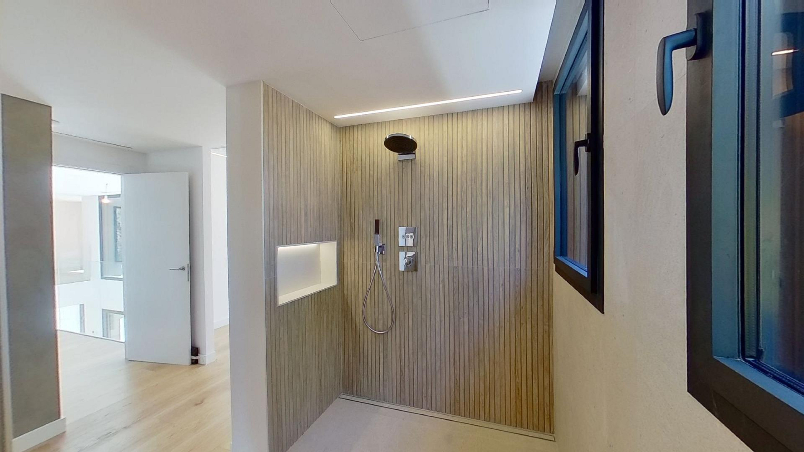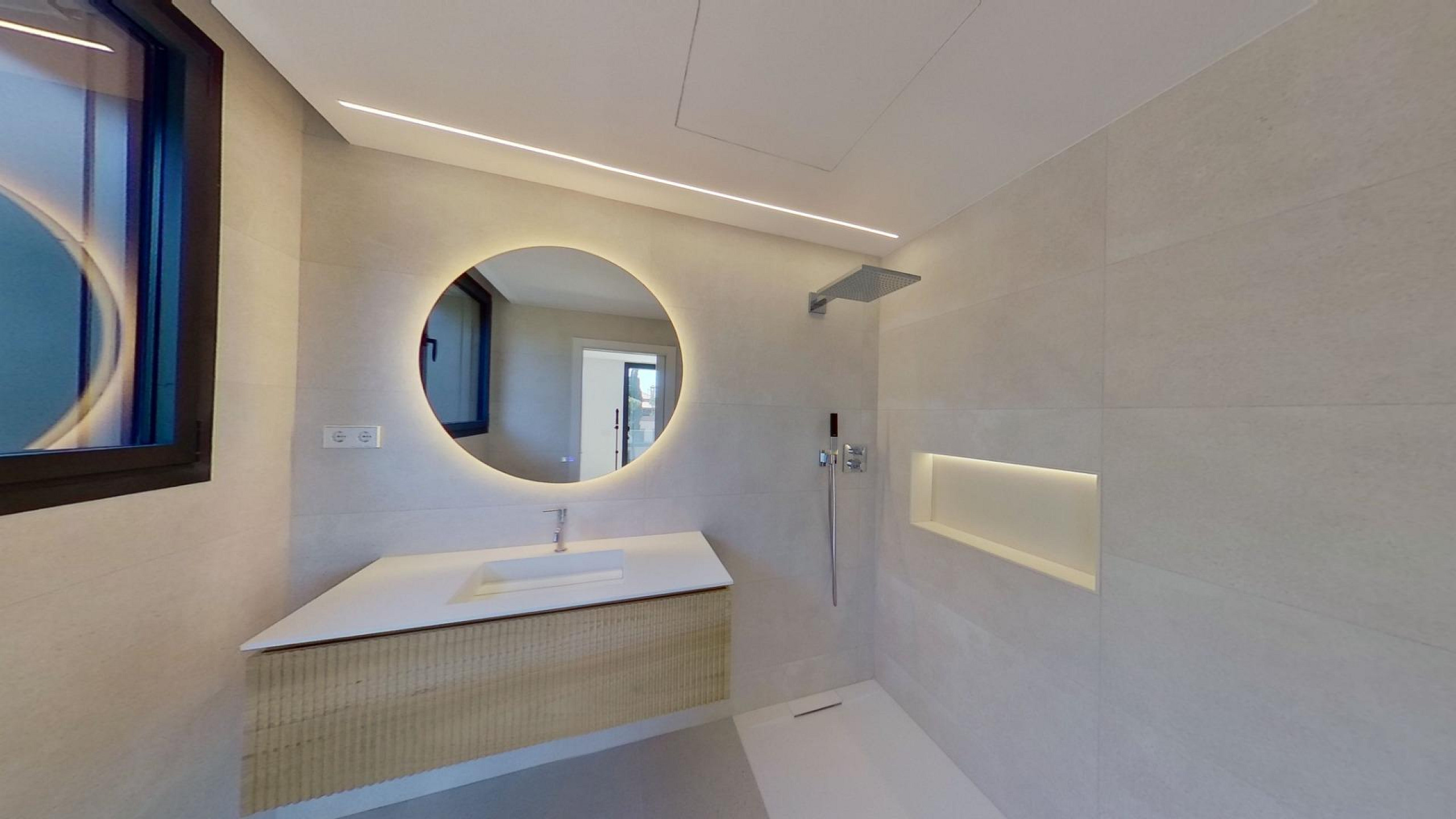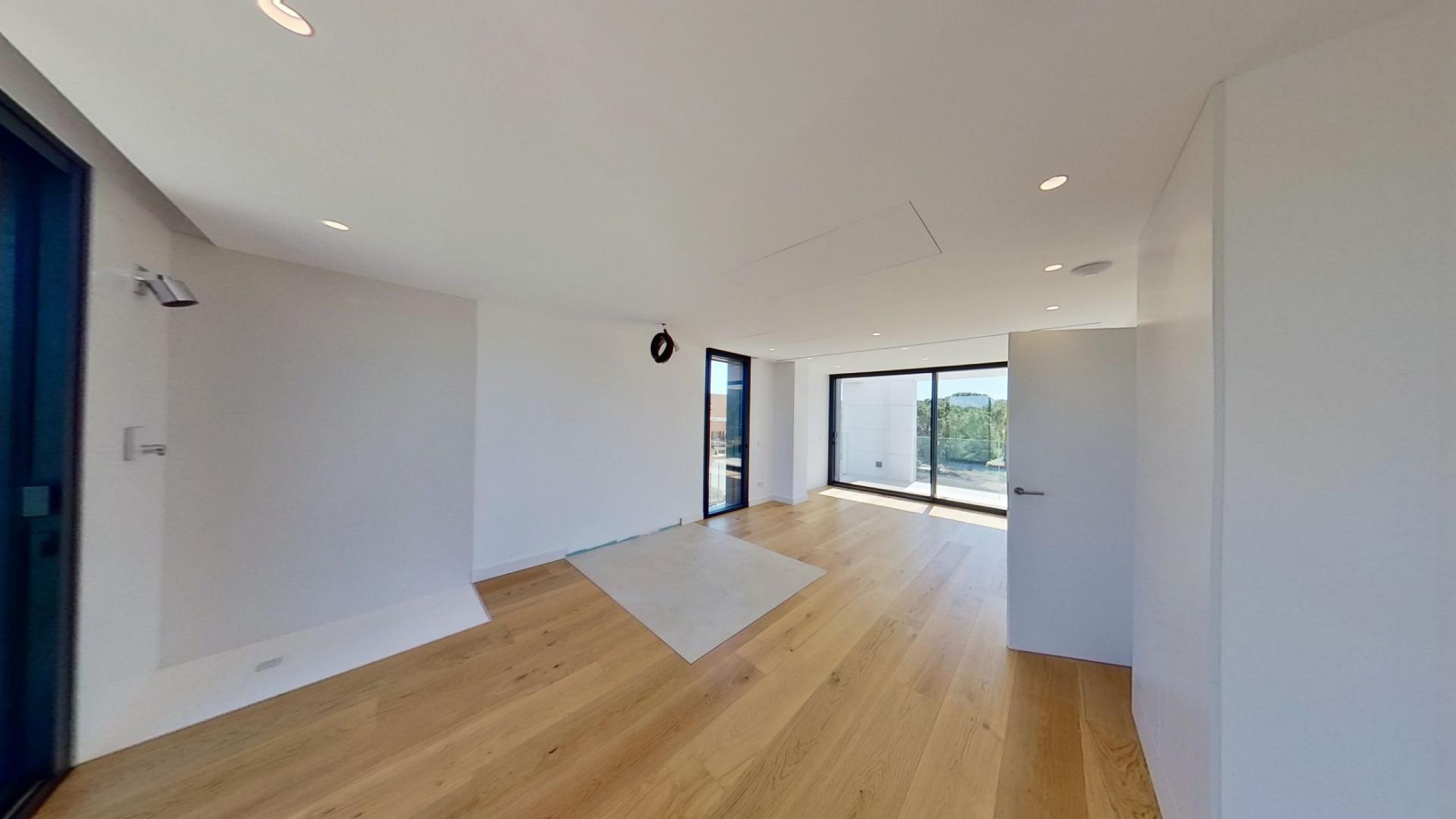 Дом оснащён передовыми технологиями и системами энергоэффективности: аэротермальная система с тёплыми полами, централизованное кондиционирование с регулировкой по зонам, солнечные панели, автоматические жалюзи и современная система «умный дом», управляемая с планшета.