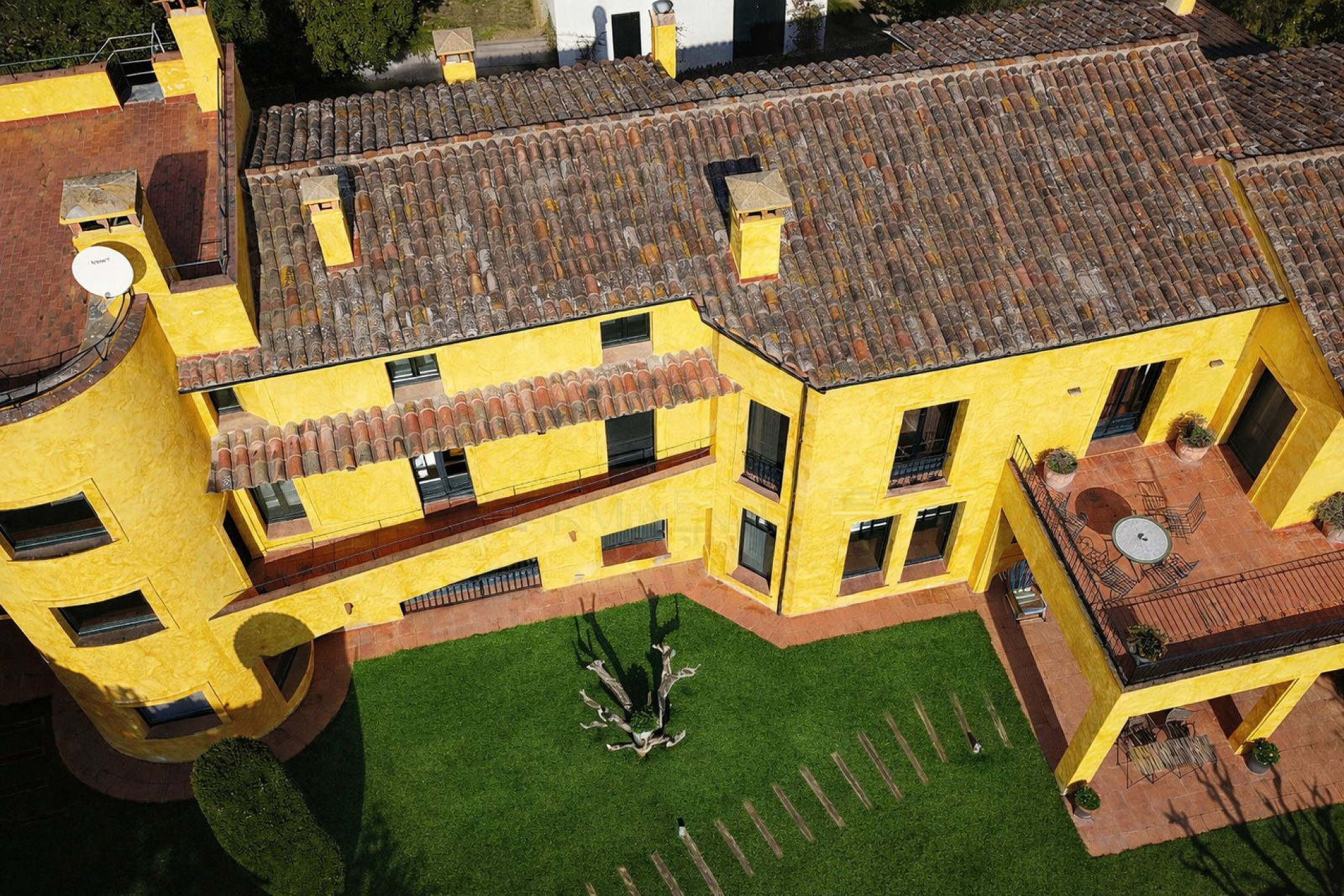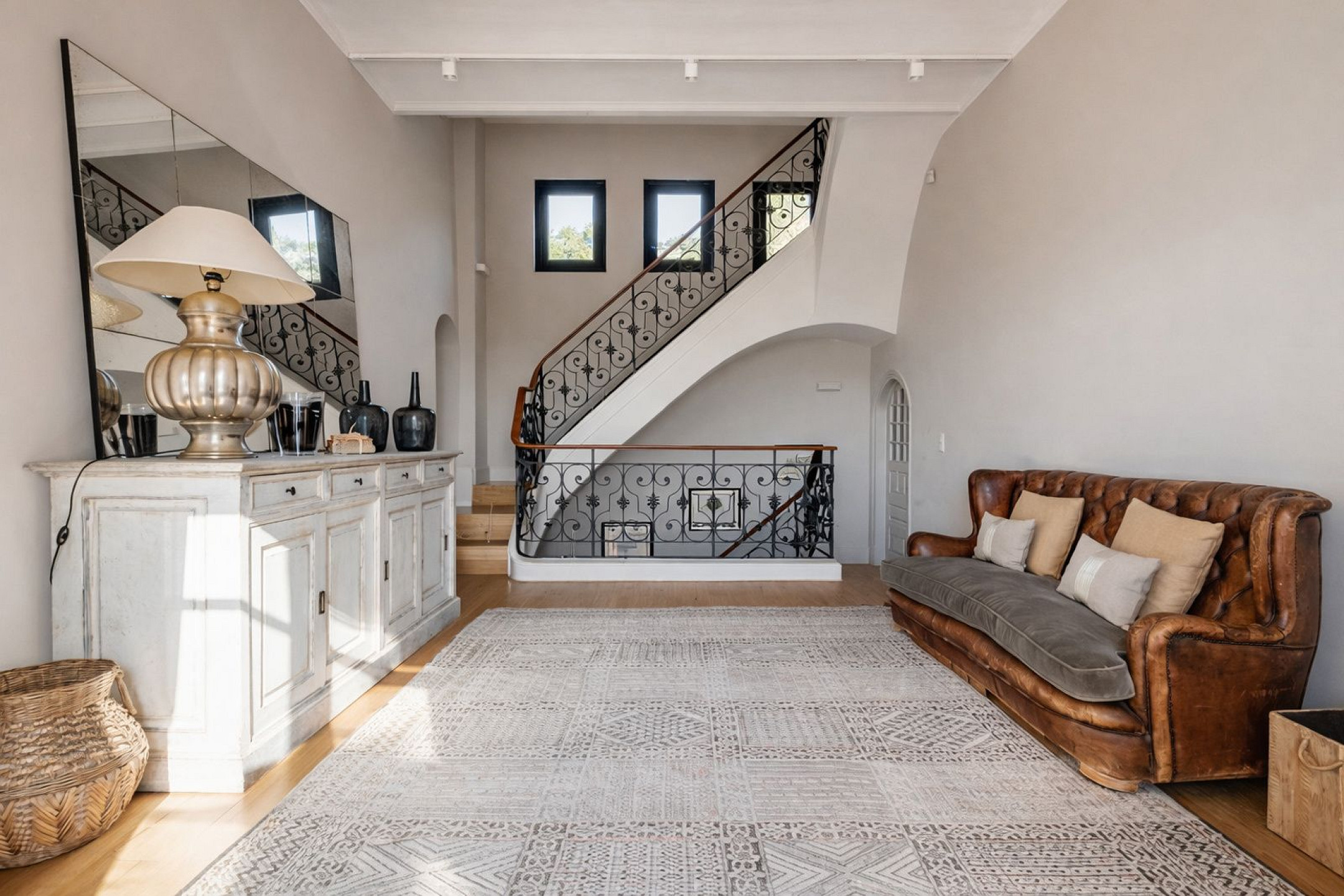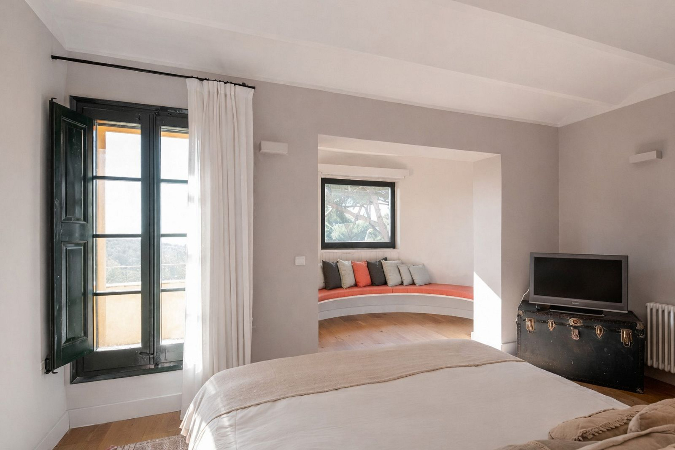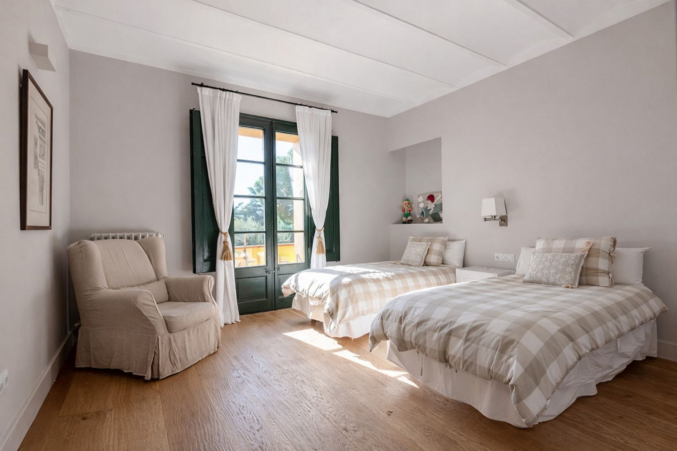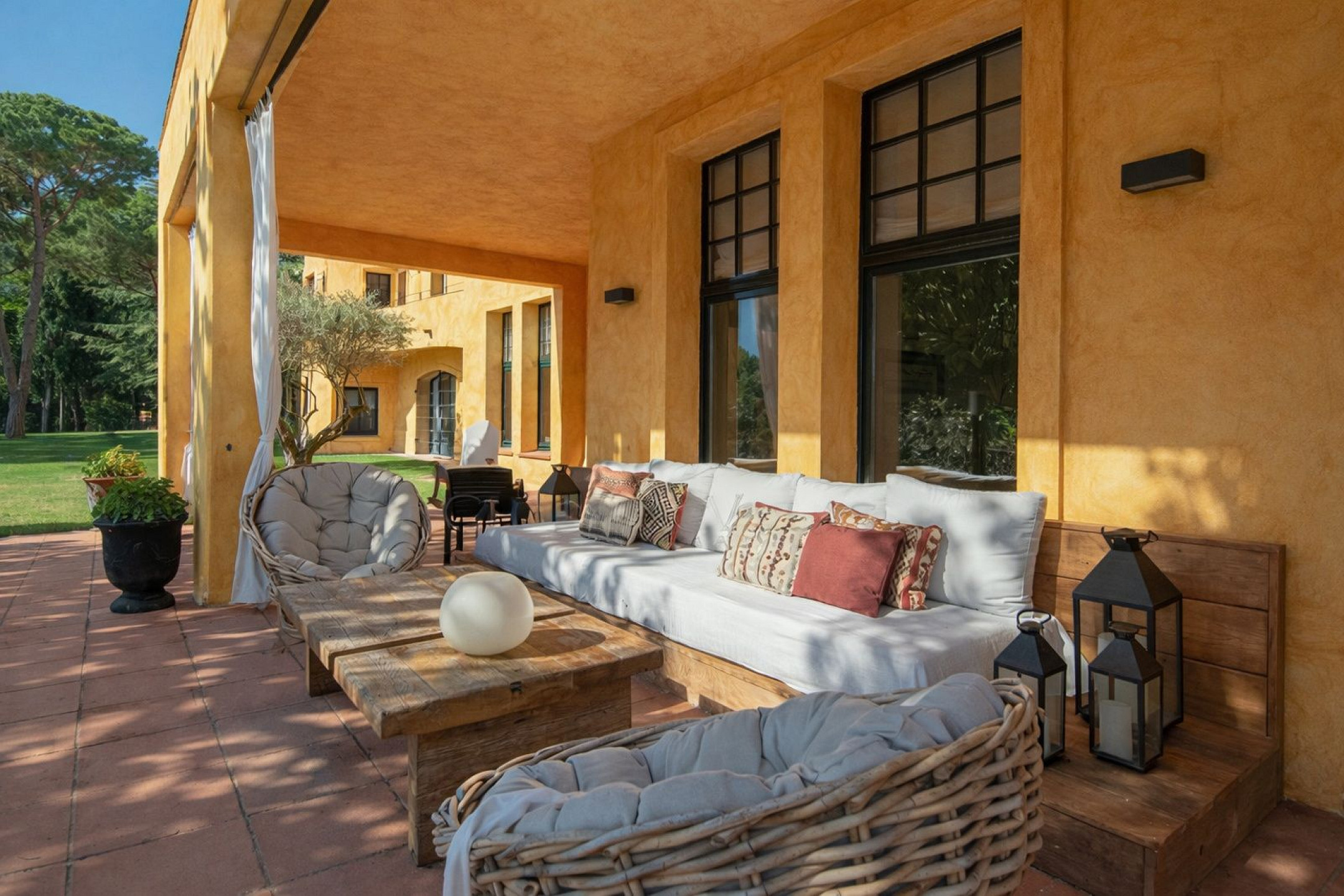 Главный дом элегантно и функционально распределён: 5 двухместных спален, каждая с гардеробной и собственной ванной комнатой; комната для персонала с ванной и прачечной; просторная главная гостиная; два отдельных кабинета для чтения; столовая и полностью оборудованная кухня. Полностью отреставрирована в 2016 году, сочетает в себе материалы высокого качества, просторные интерьеры и средиземноморский стиль, предлагая уникальный комфорт и роскошь для семей или групп, ищущих эксклюзивное жильё.