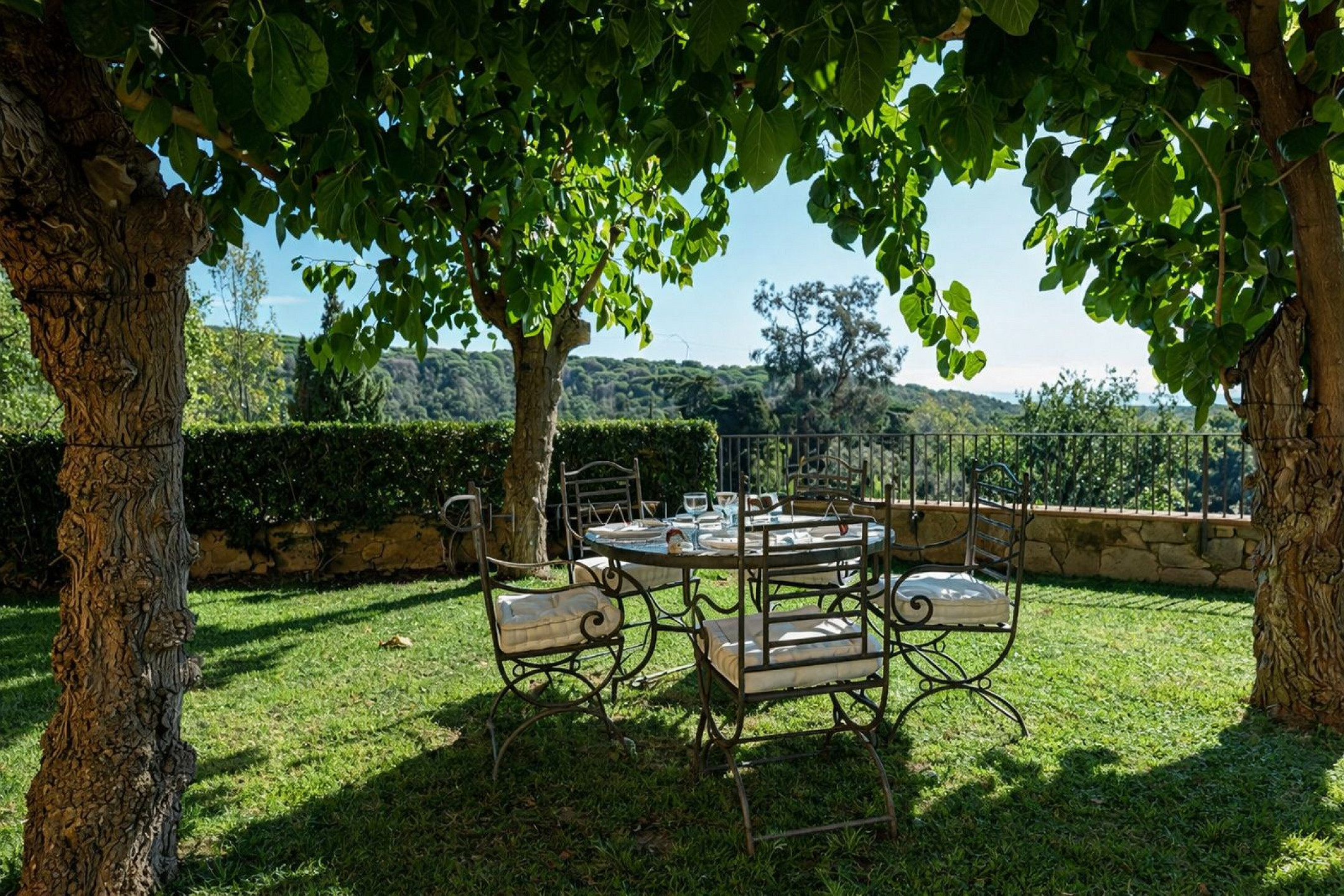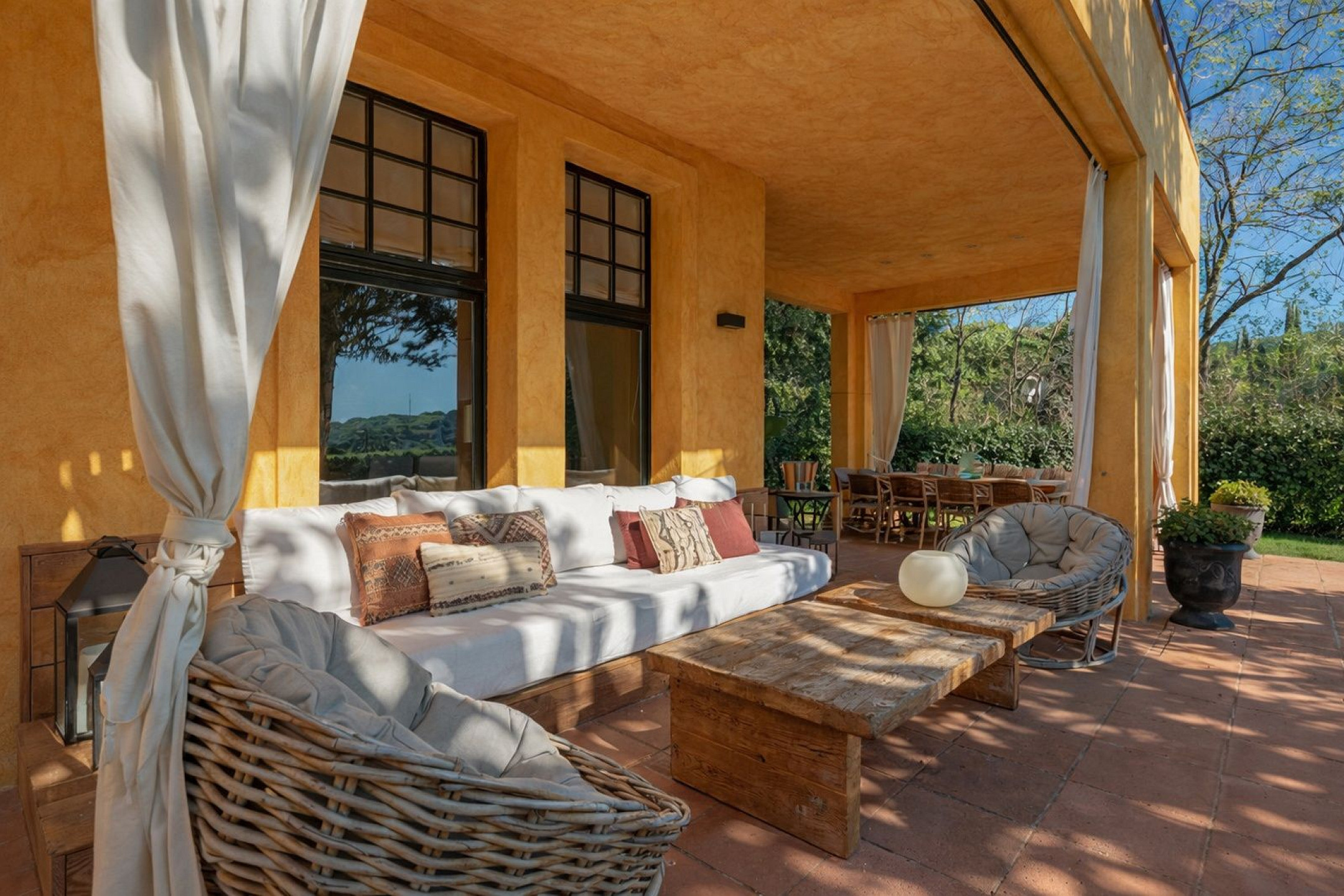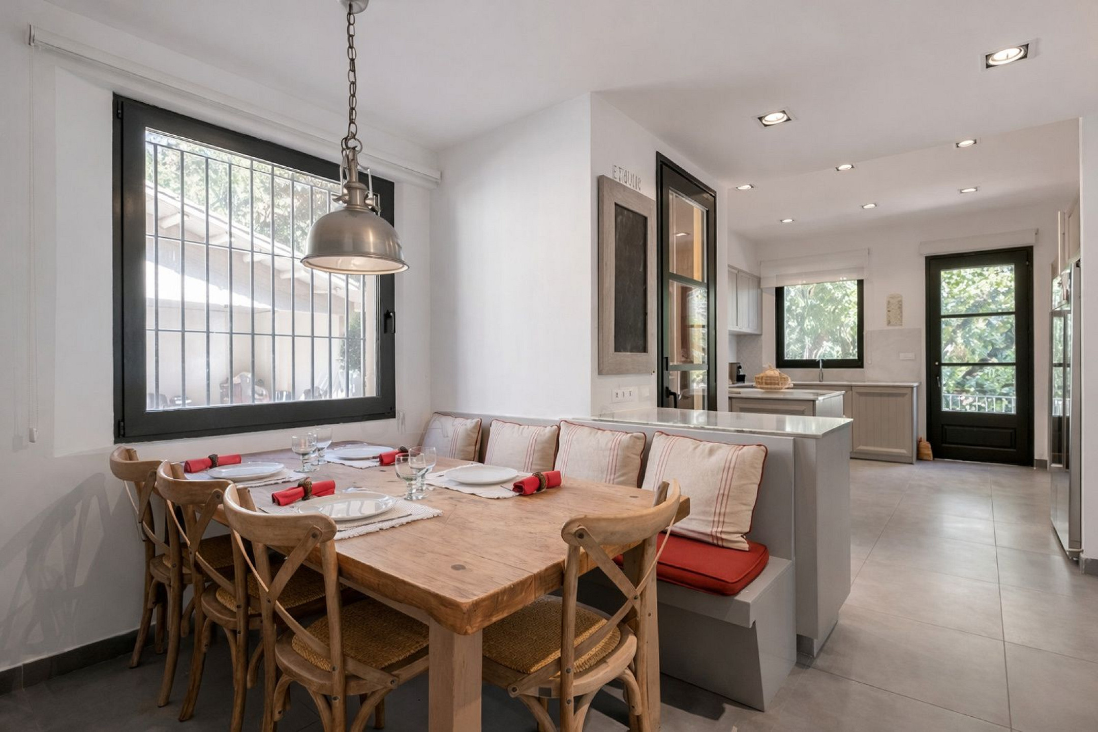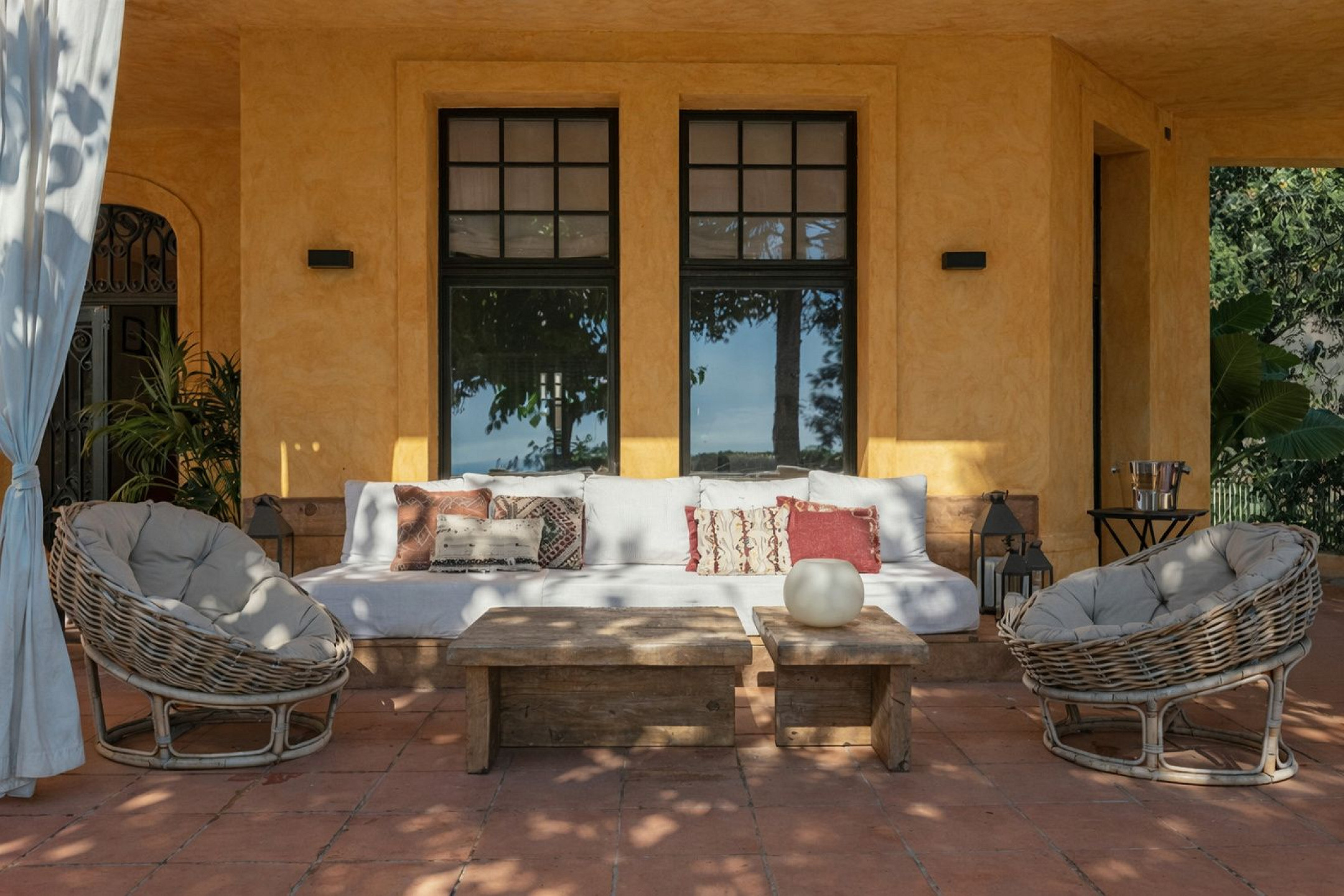 Главный дом элегантно и функционально распределён: 5 двухместных спален, каждая с гардеробной и собственной ванной комнатой; комната для персонала с ванной и прачечной; просторная главная гостиная; два отдельных кабинета для чтения; столовая и полностью оборудованная кухня. Полностью отреставрирована в 2016 году, сочетает в себе материалы высокого качества, просторные интерьеры и средиземноморский стиль, предлагая уникальный комфорт и роскошь для семей или групп, ищущих эксклюзивное жильё.