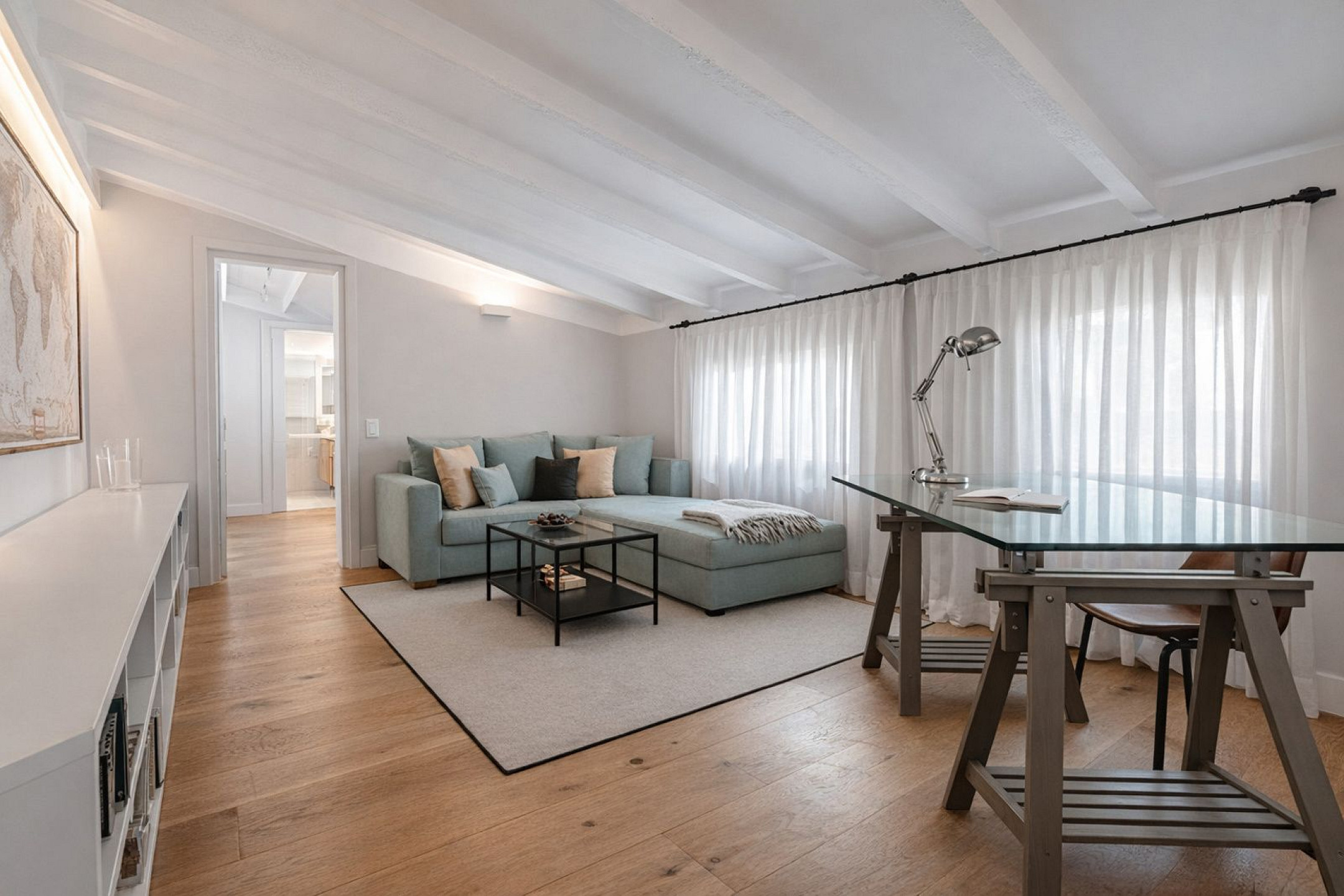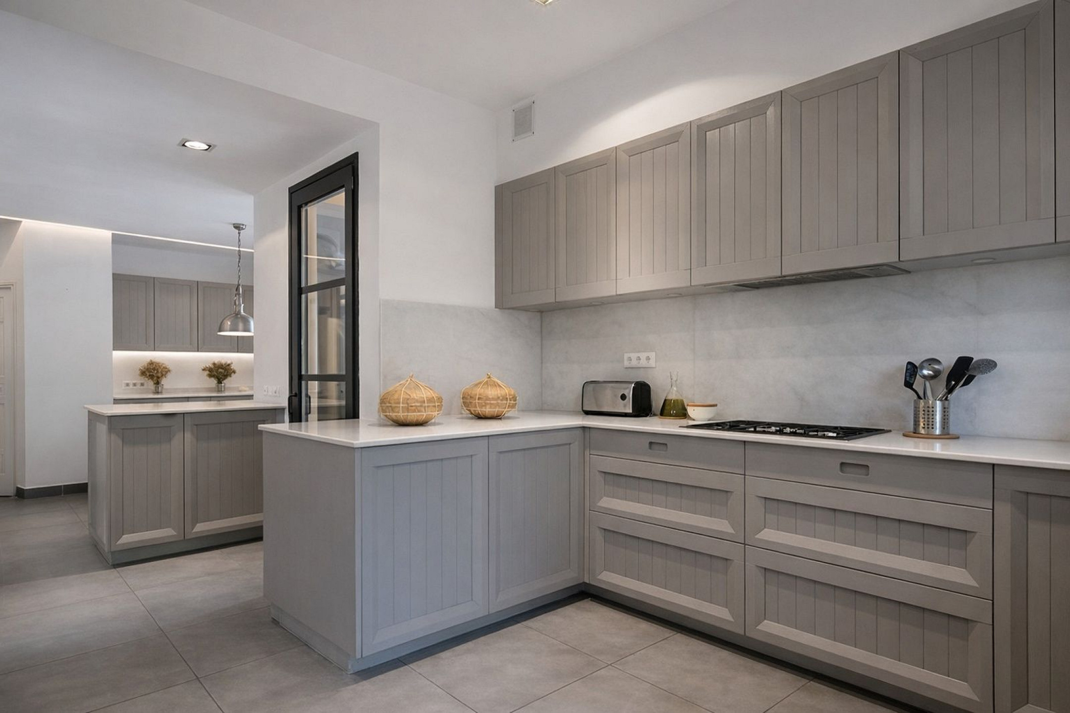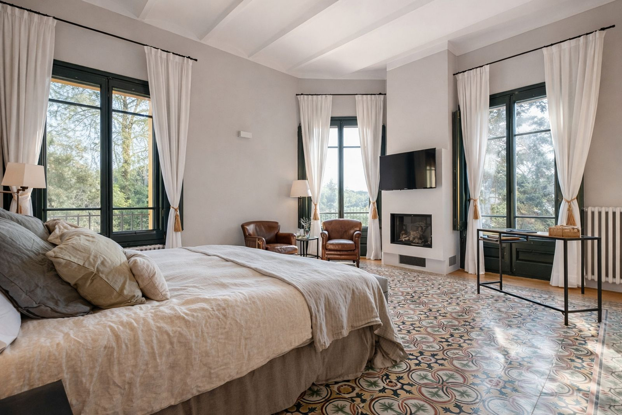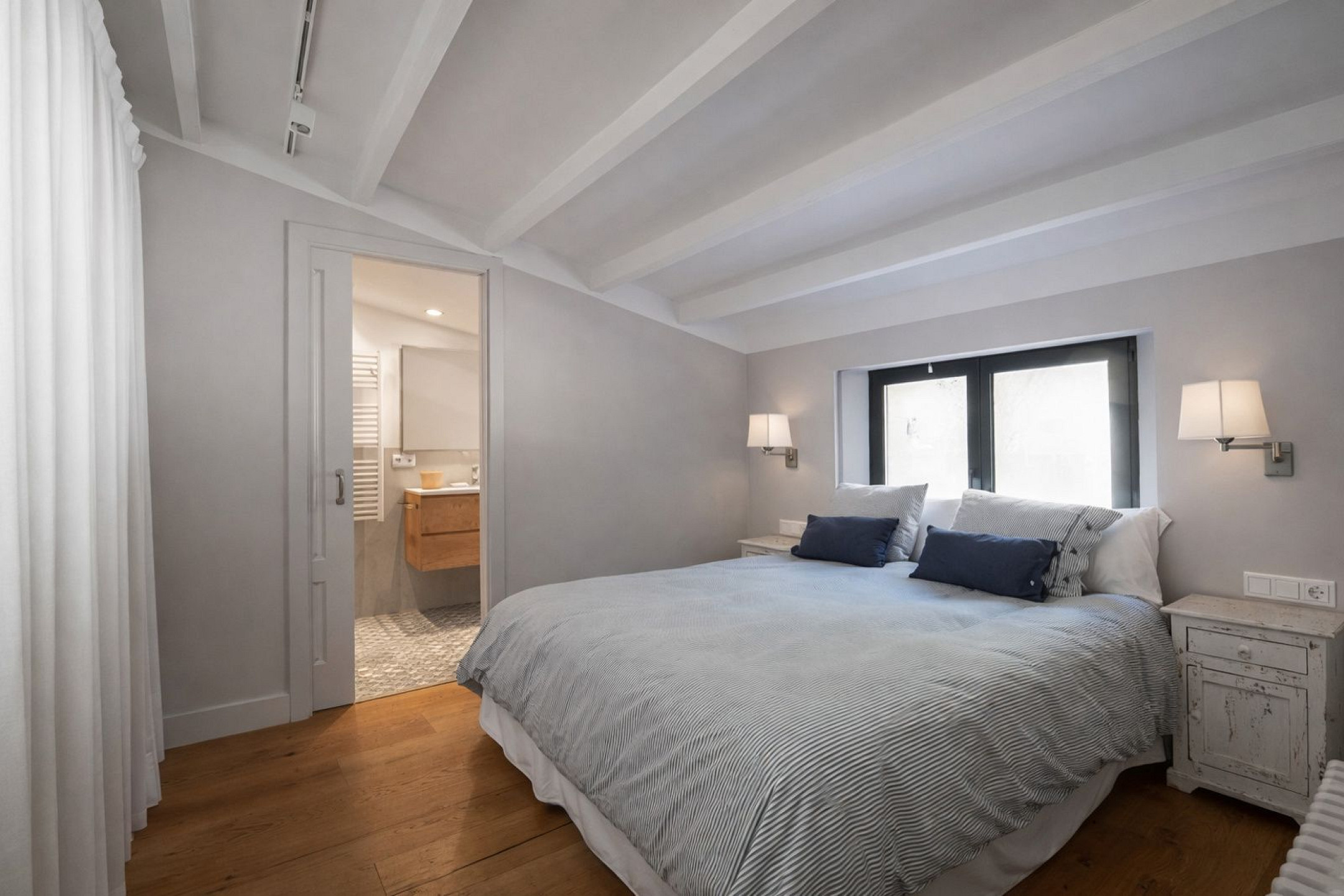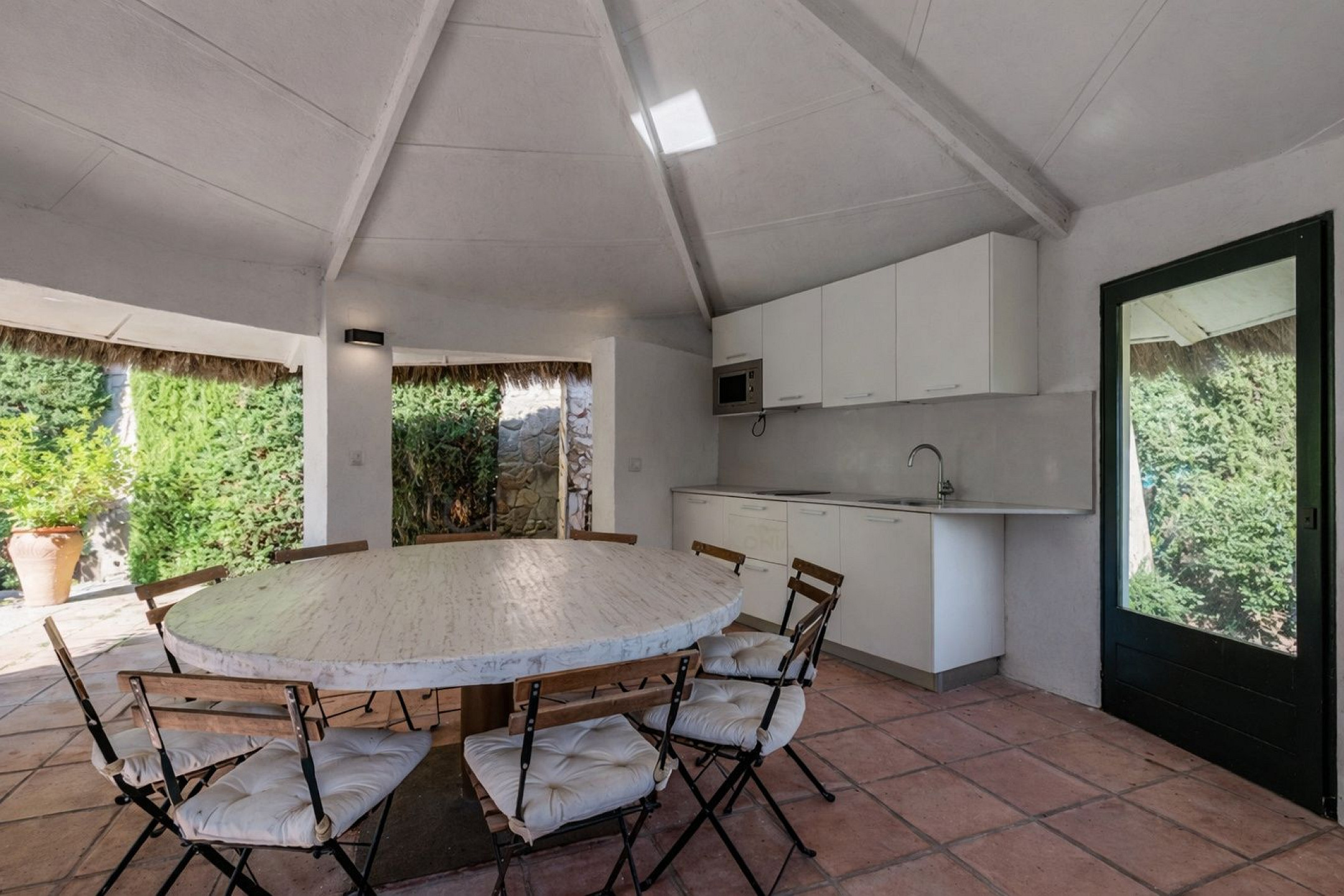 Главный дом элегантно и функционально распределён: 5 двухместных спален, каждая с гардеробной и собственной ванной комнатой; комната для персонала с ванной и прачечной; просторная главная гостиная; два отдельных кабинета для чтения; столовая и полностью оборудованная кухня. Полностью отреставрирована в 2016 году, сочетает в себе материалы высокого качества, просторные интерьеры и средиземноморский стиль, предлагая уникальный комфорт и роскошь для семей или групп, ищущих эксклюзивное жильё.