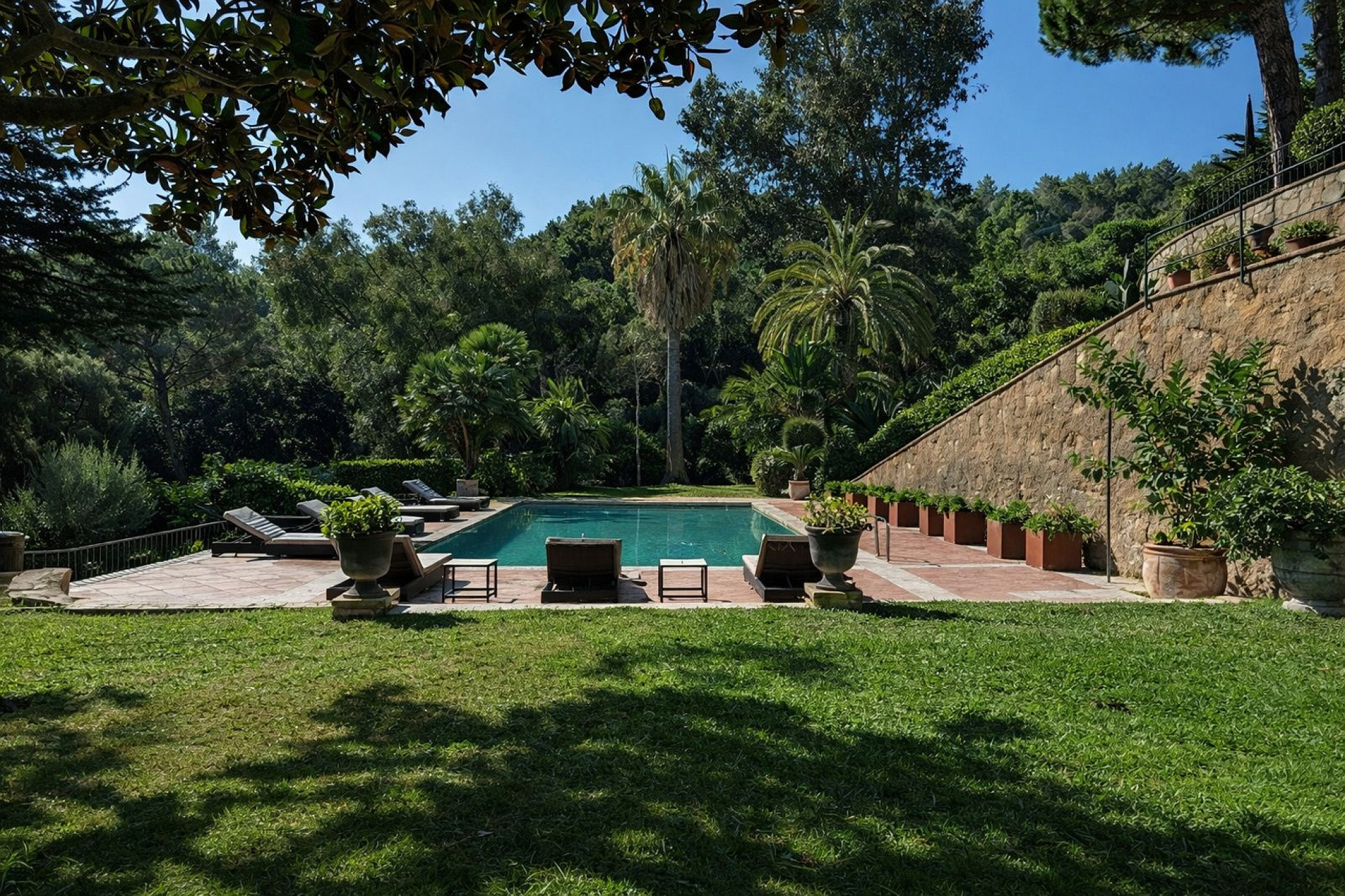 Недвижимость включает главный дом площадью 900 м² и два независимых анекса по 80 м² каждый, полностью оборудованных с отдельными входами — идеально для гостей или персонала. Вилла окружена просторными зелёными зонами, есть бассейн, детская площадка и внешние зоны для отдыха на природе.