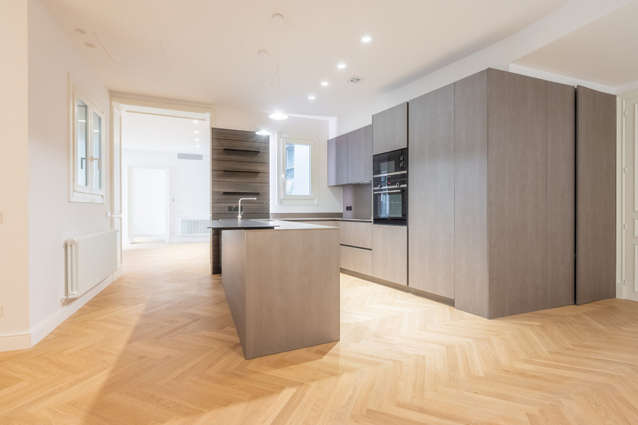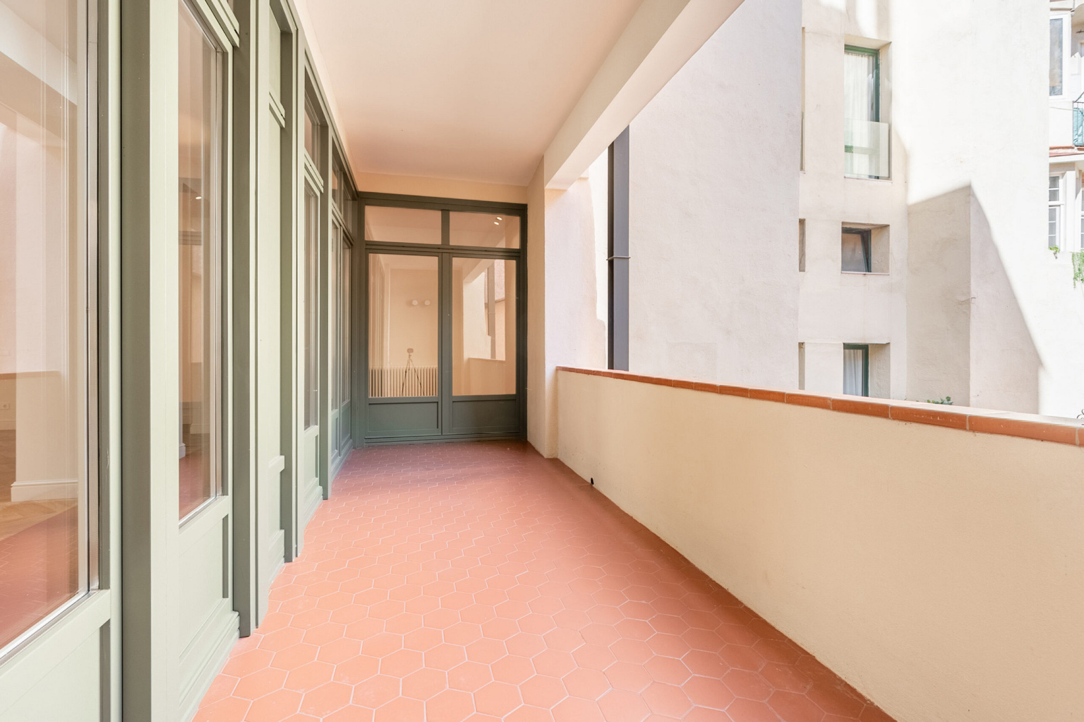 Интерьеры отличаются сочетанием оригинальных гидравлических плиток и паркетных полов, создавая теплую и элегантную атмосферу. Центральное отопление и система кондиционирования обеспечивают комфорт в любое время года.