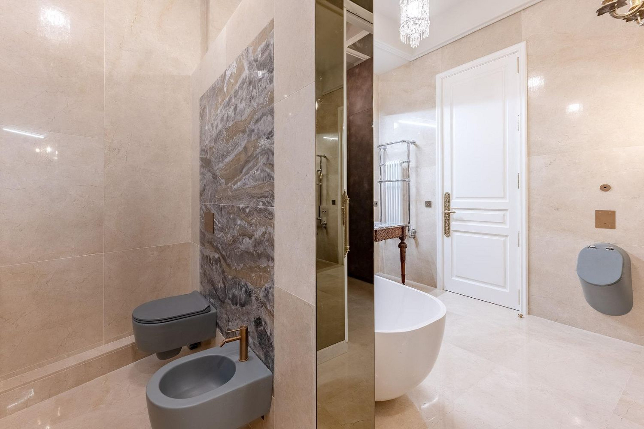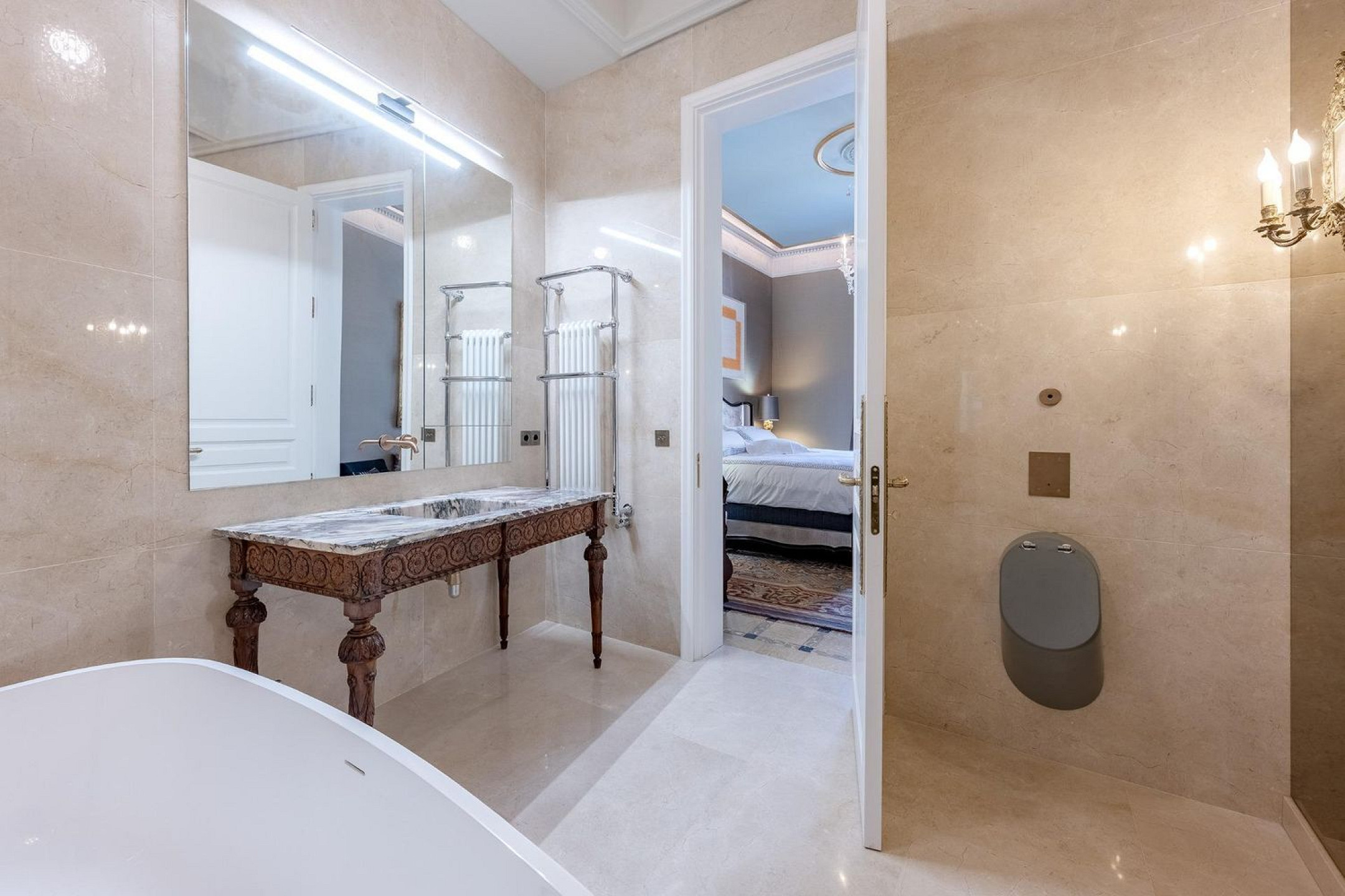 В квартире три спальни, две гостиные и четыре ванные комнаты, две из них — en suite. Более 300 метров стен обшиты французским шелком, выполненным вручную — мастерством, которым владеют лишь два ремесленника во всей Каталонии. Мягкая шелковая отделка не только придает роскошную фактуру, но и поглощает звук, обеспечивая полную приватность. Деревянные рамы с двойными стеклопакетами полностью изолируют жилище от внешнего шума.