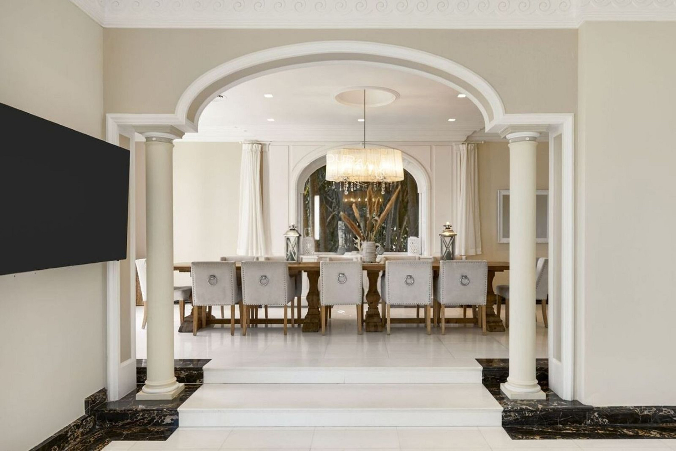 Главный дом распределён на три уровня с лифтом и включает 6 спален, просторные светлые гостиные зоны и виды на море. Основной этаж предлагает открытое пространство с салоном, столовой и полностью оборудованной кухней.