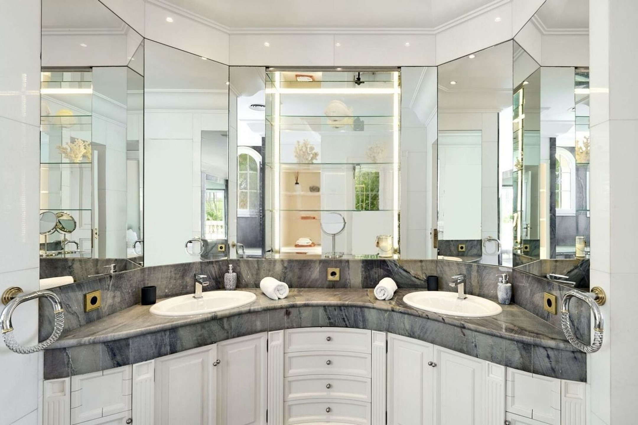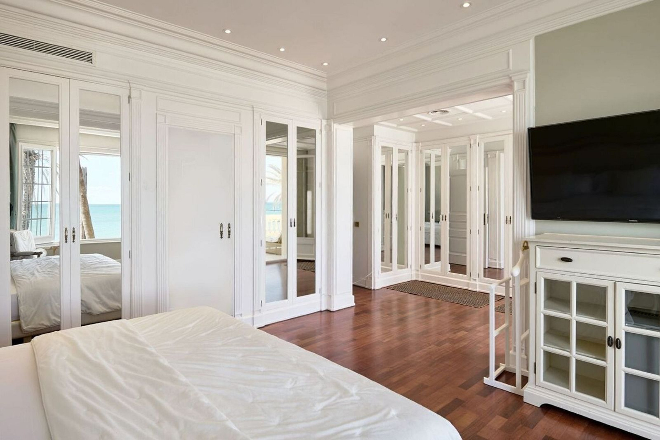 На втором уровне расположена мастер-сьют с террасами, а также дополнительные спальни с ванными комнатами. Верхний этаж дополняет жилое пространство ещё двумя спальнями.