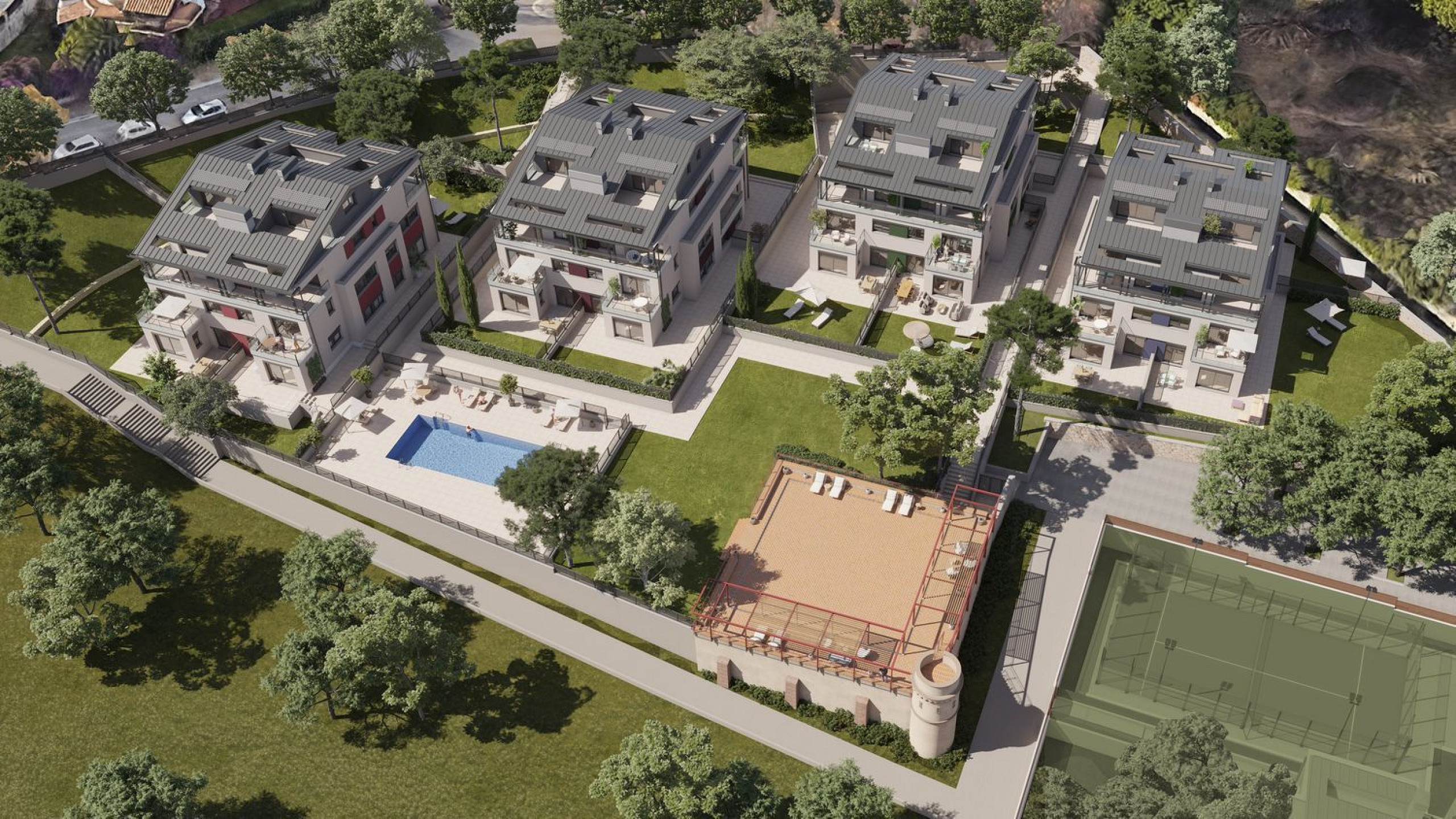 Проект оснащён системой аэротермии для экологичной и энергоэффективной климатизации, а также располагает общим бассейном. В каждой квартире предусмотрены кладовая и два парковочных места, что делает проживание максимально удобным.