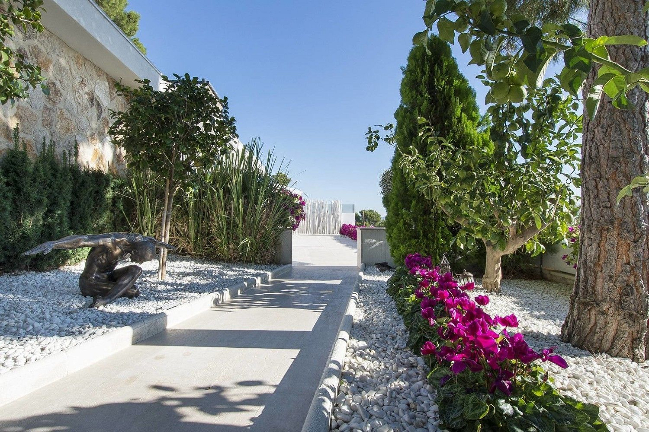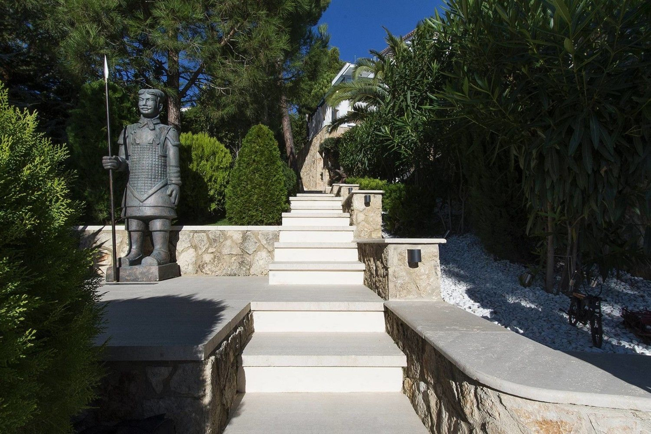 Также есть зона для отдыха с инфинити-бассейном, барбекю и уличным душем, а также гостевой апартамент с гостиной-столовой, кухней, двумя спальнями и ванной комнатой.