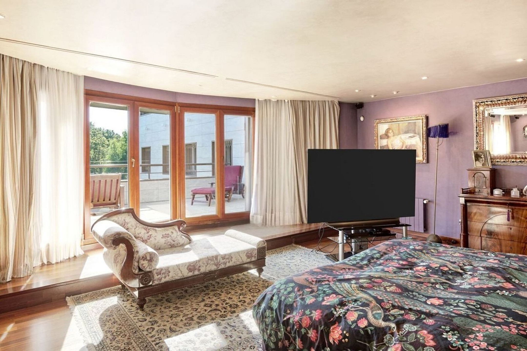 На основном жилом уровне находится зона спален: три спальни с ванными комнатами и встроенными шкафами с видом на сад. В отдельном крыле расположена мастер-сьют, включающая гардеробную, приватную гостиную, зону спортзала с пространством для массажа и ванную комнату с гидромассажной ванной. Терраса, ориентированная на юг, соединяет спальни с садом.