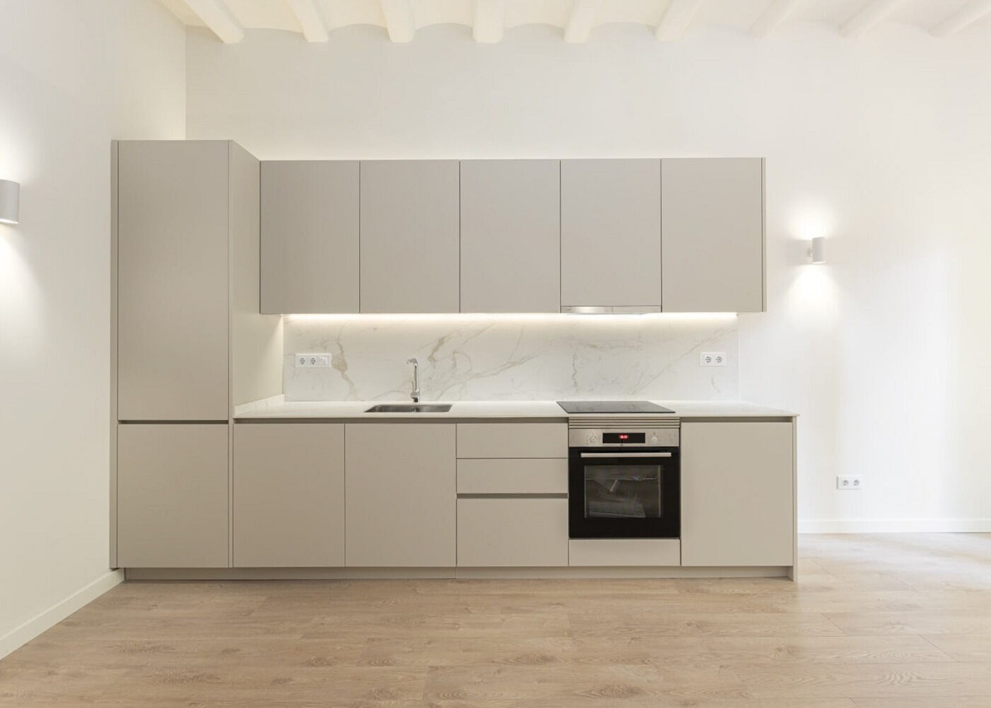 Эта полностью реновированная квартира с 2 спальнями и 2 ванными комнатами готова к заселению. Расположена на первом этаже знакового здания на улице Маргарит, Побле Сек, сочетая историческое очарование барселонской архитектуры с современным функциональным дизайном.