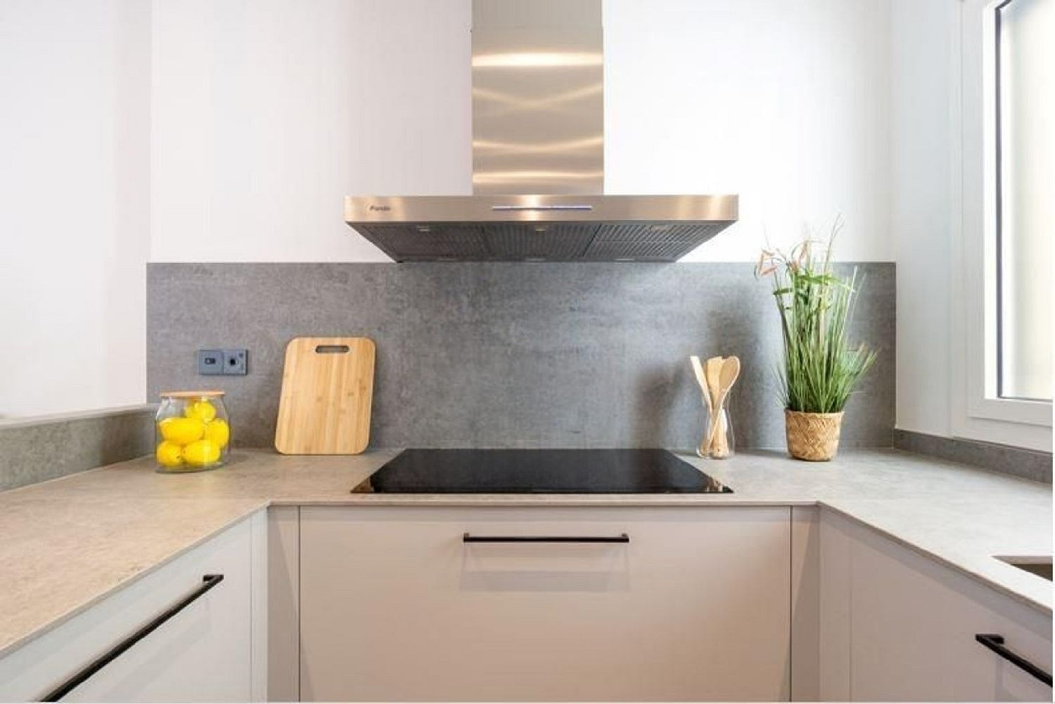 Кухня полностью оснащена бытовой техникой последнего поколения и выполнена с использованием столешниц из керамогранита и дизайнерской мебели, предлагая функциональное и элегантное пространство для любителей кулинарии.