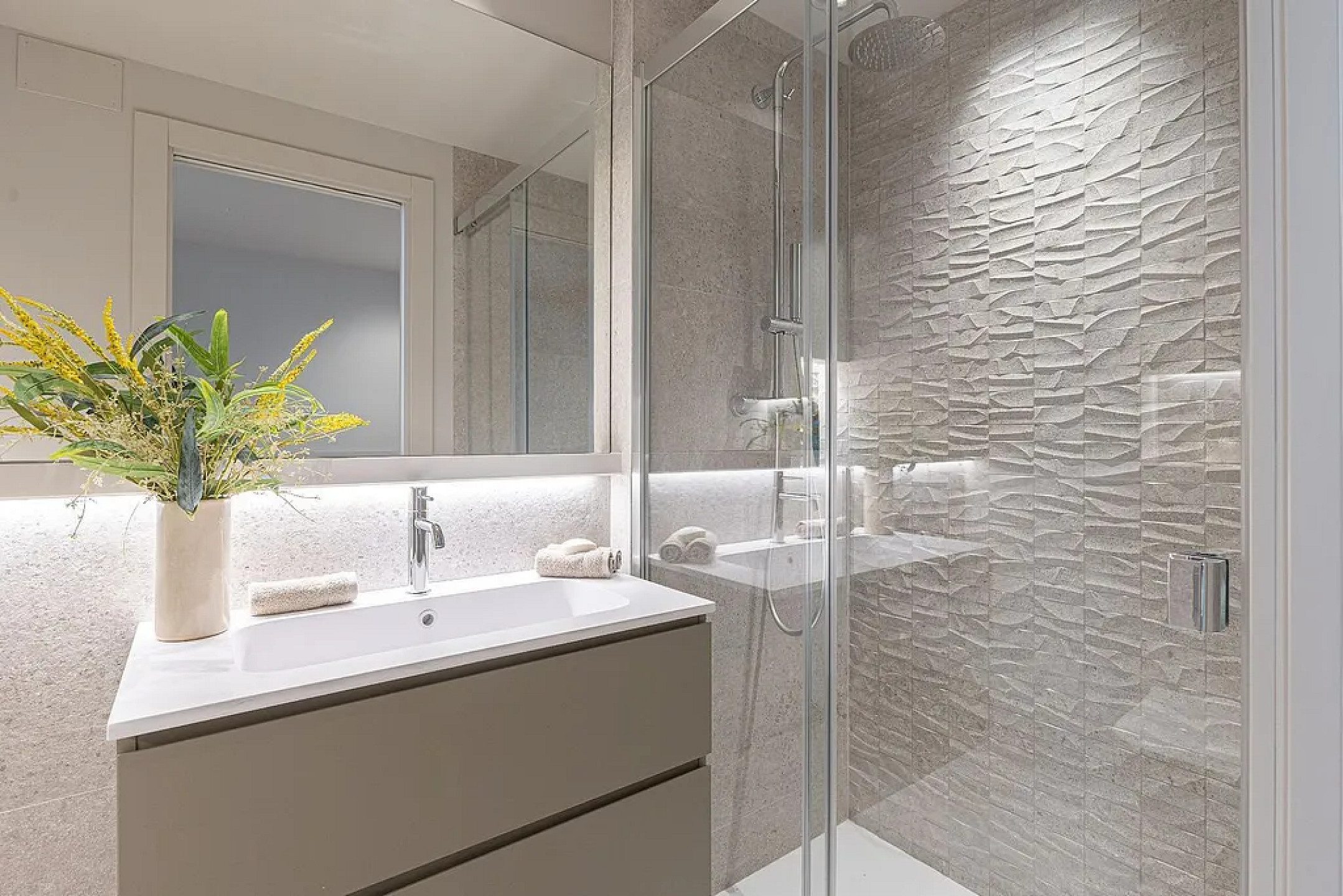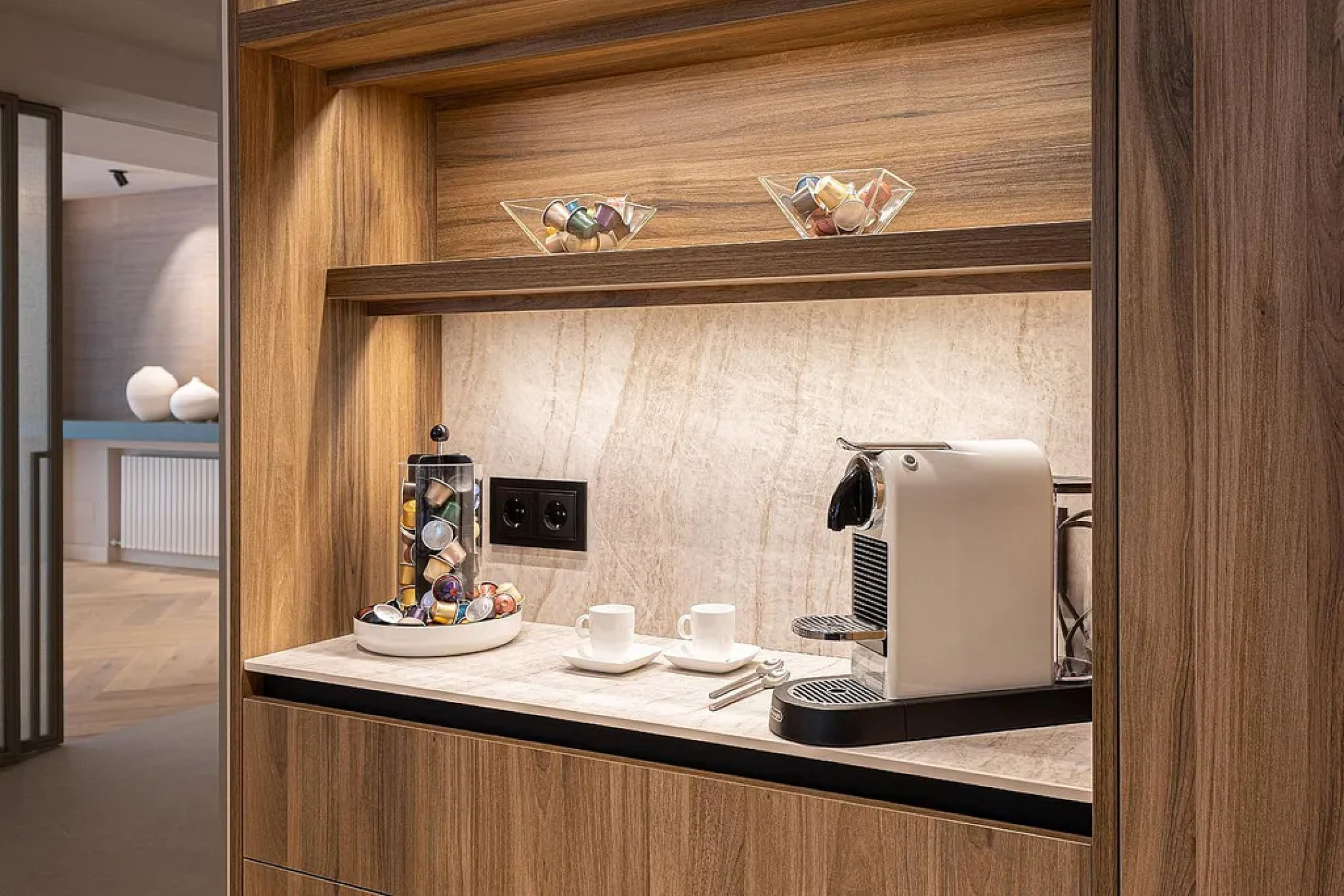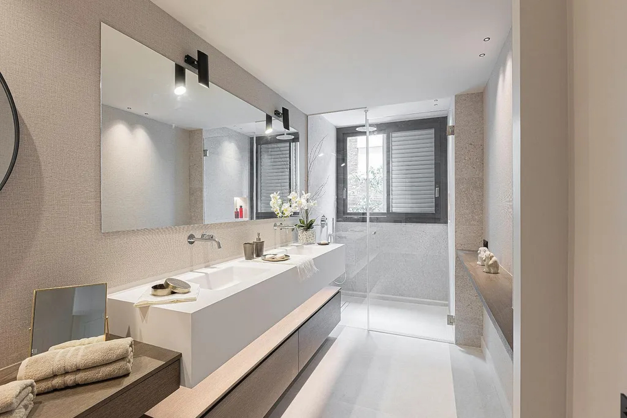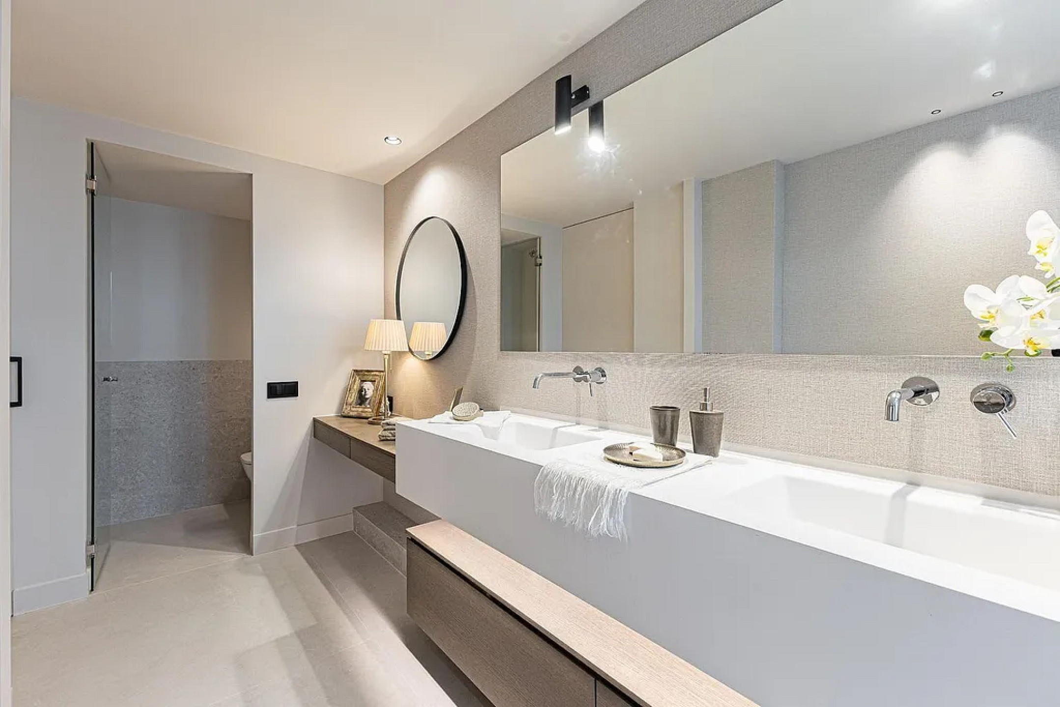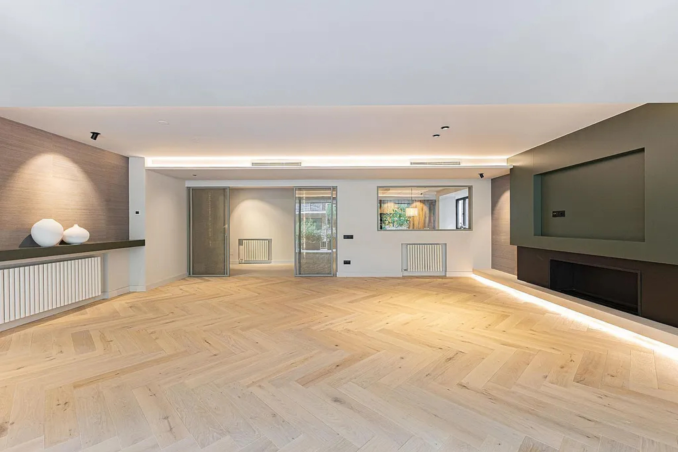 Ночная зона включает две junior-суиты со своими кабинетами и ванными, отдельную спальню с ванной и впечатляющую master-суиту с гардеробной и дизайнерской ванной комнатой. Вся недвижимость — внешняя, с оконными системами нового поколения, двухзонным климат-контролем и отоплением радиаторами.