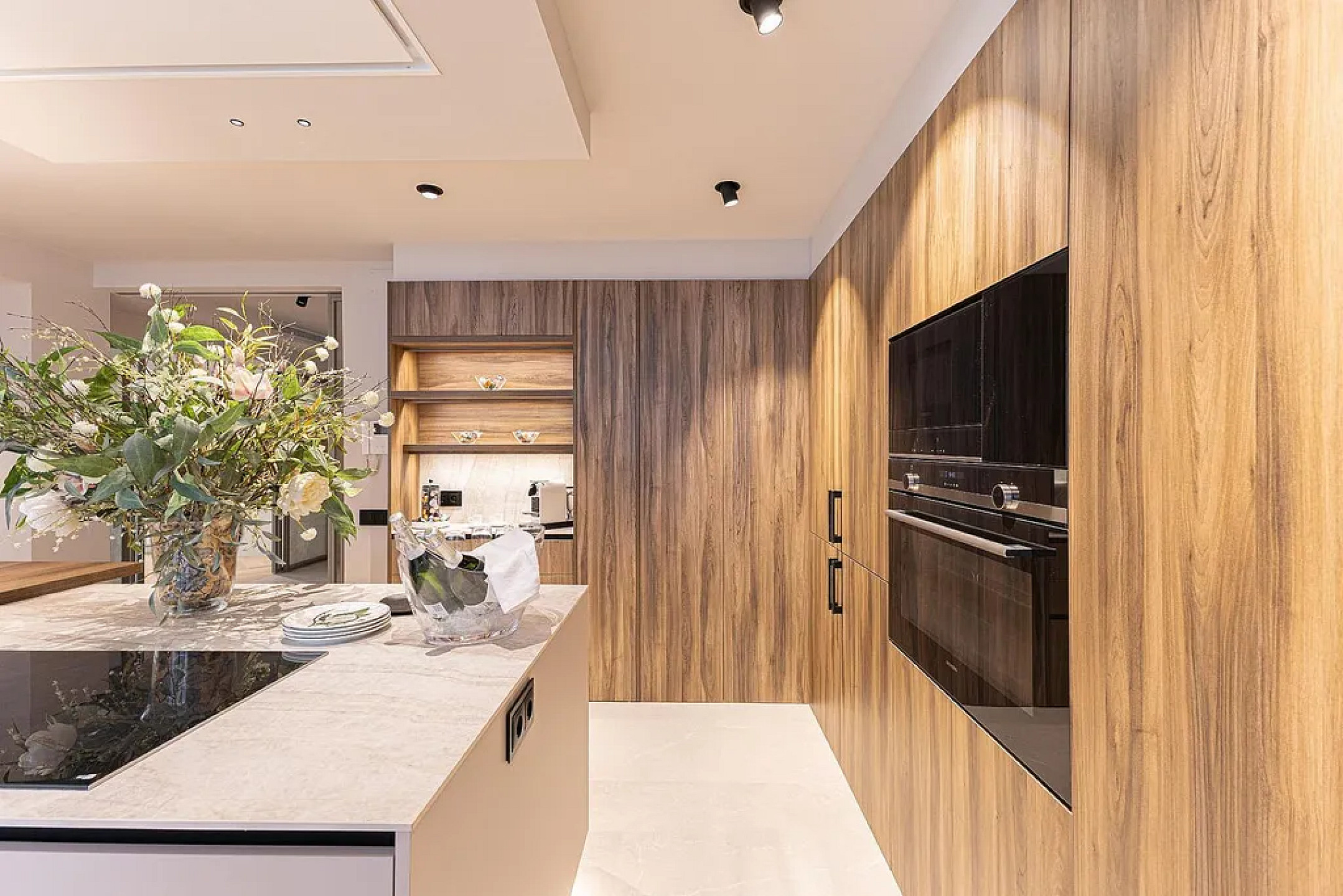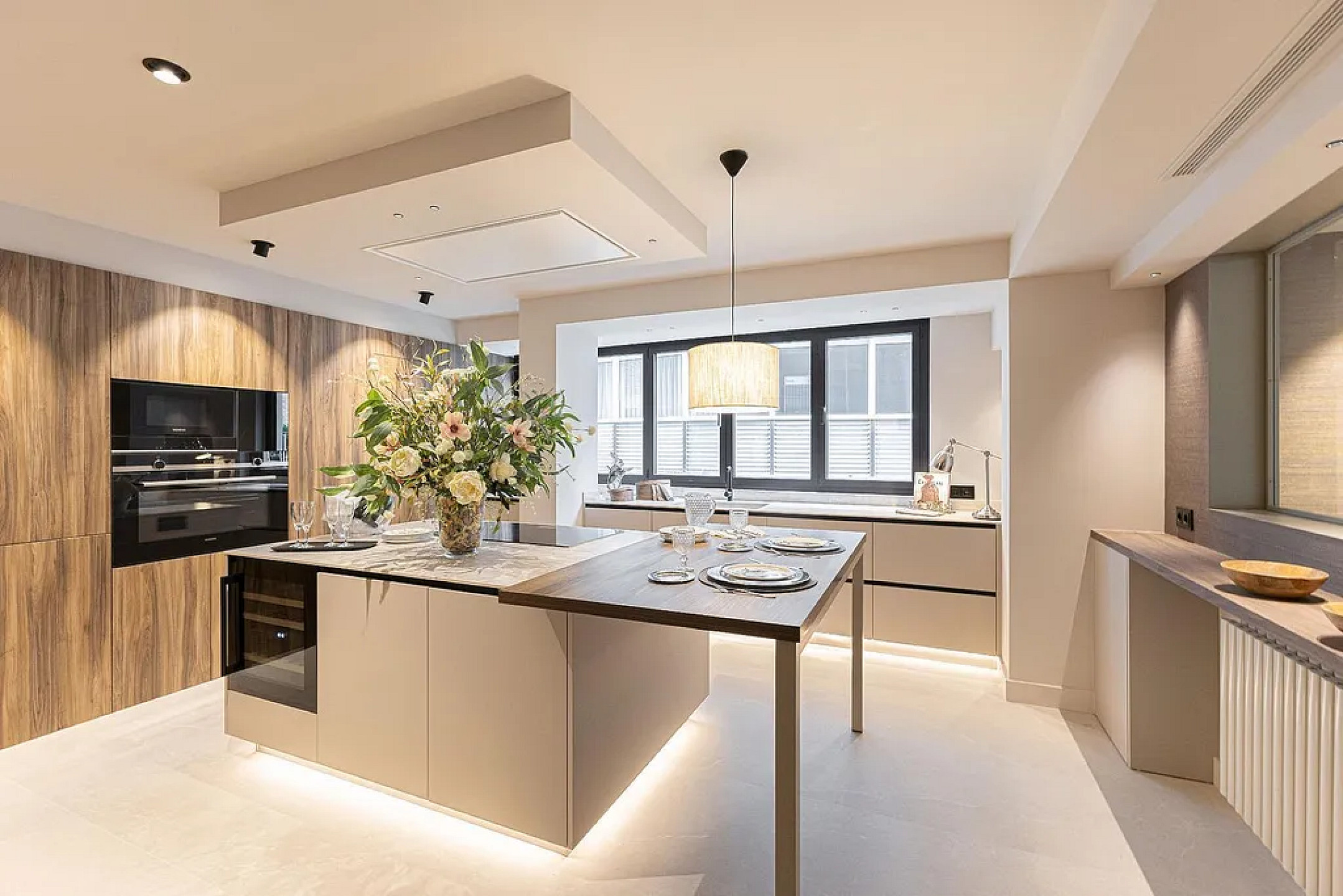 Эксклюзивная недвижимость после полной премиальной реновации, с современным дизайном и отделкой высокого уровня. Гостиная-столовая площадью более 50 м² выходит на приватную террасу 35 м² — идеальное пространство для зоны отдыха и летних ужинов. Кухня островного формата — отдельный элемент концепции: зона завтраков, винный холодильник, кофейный модуль, лучшие бытовые приборы. Имеется гостевой санузел и сервисная зона с отдельным входом.