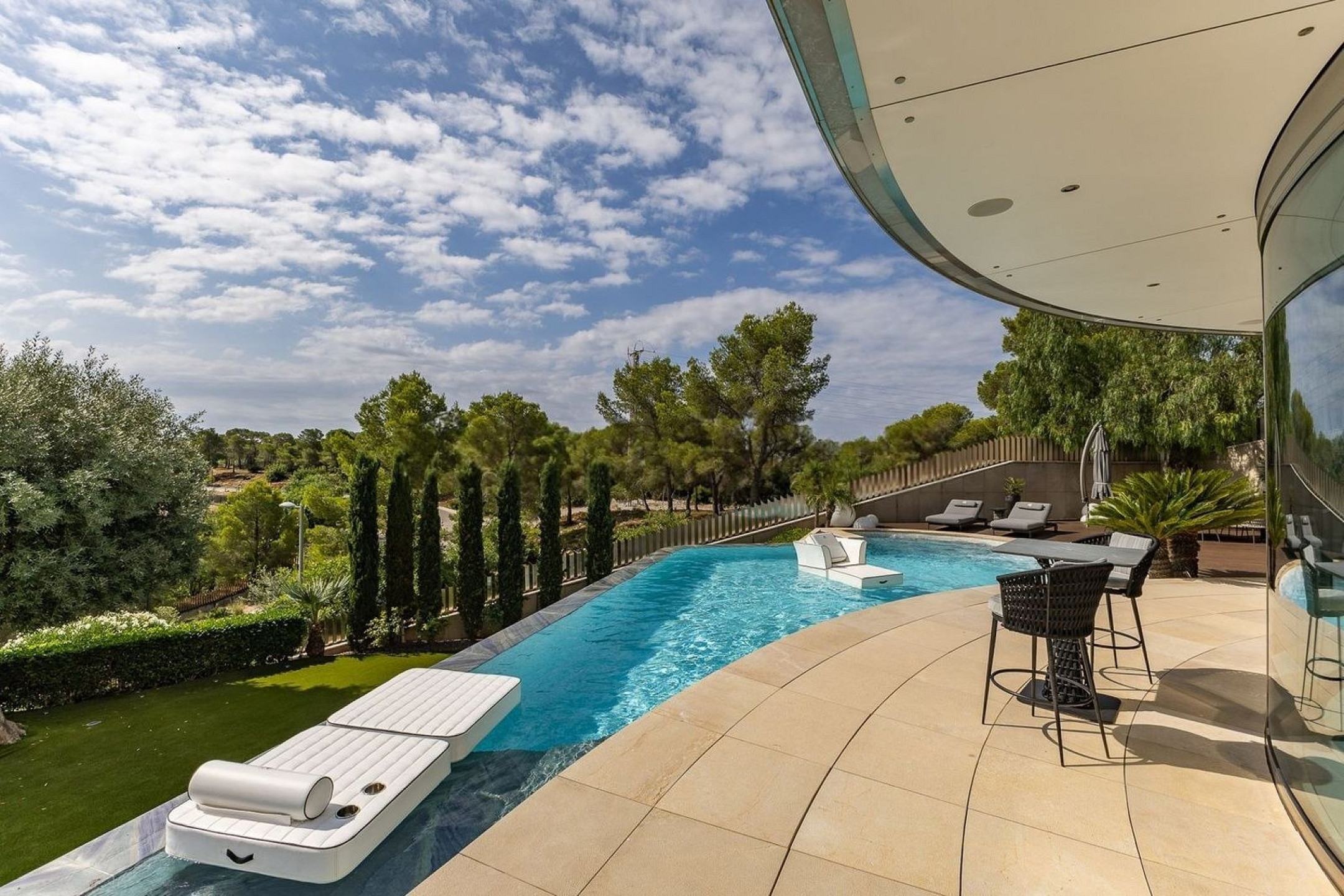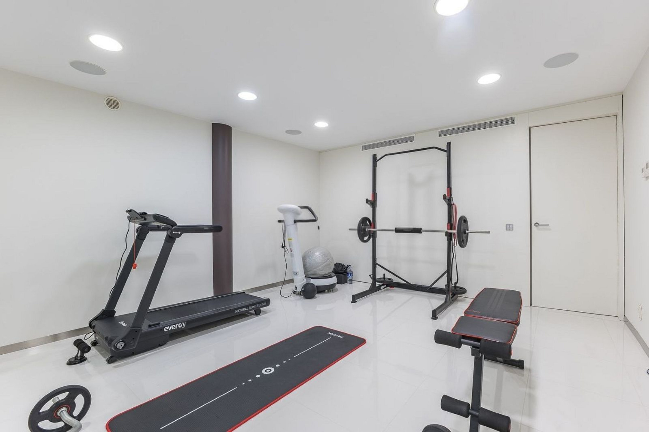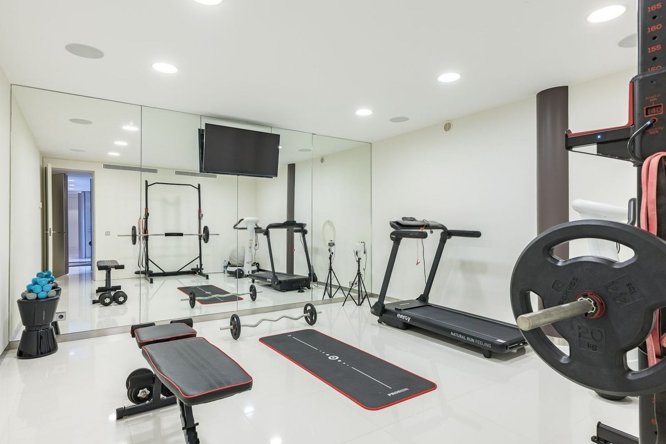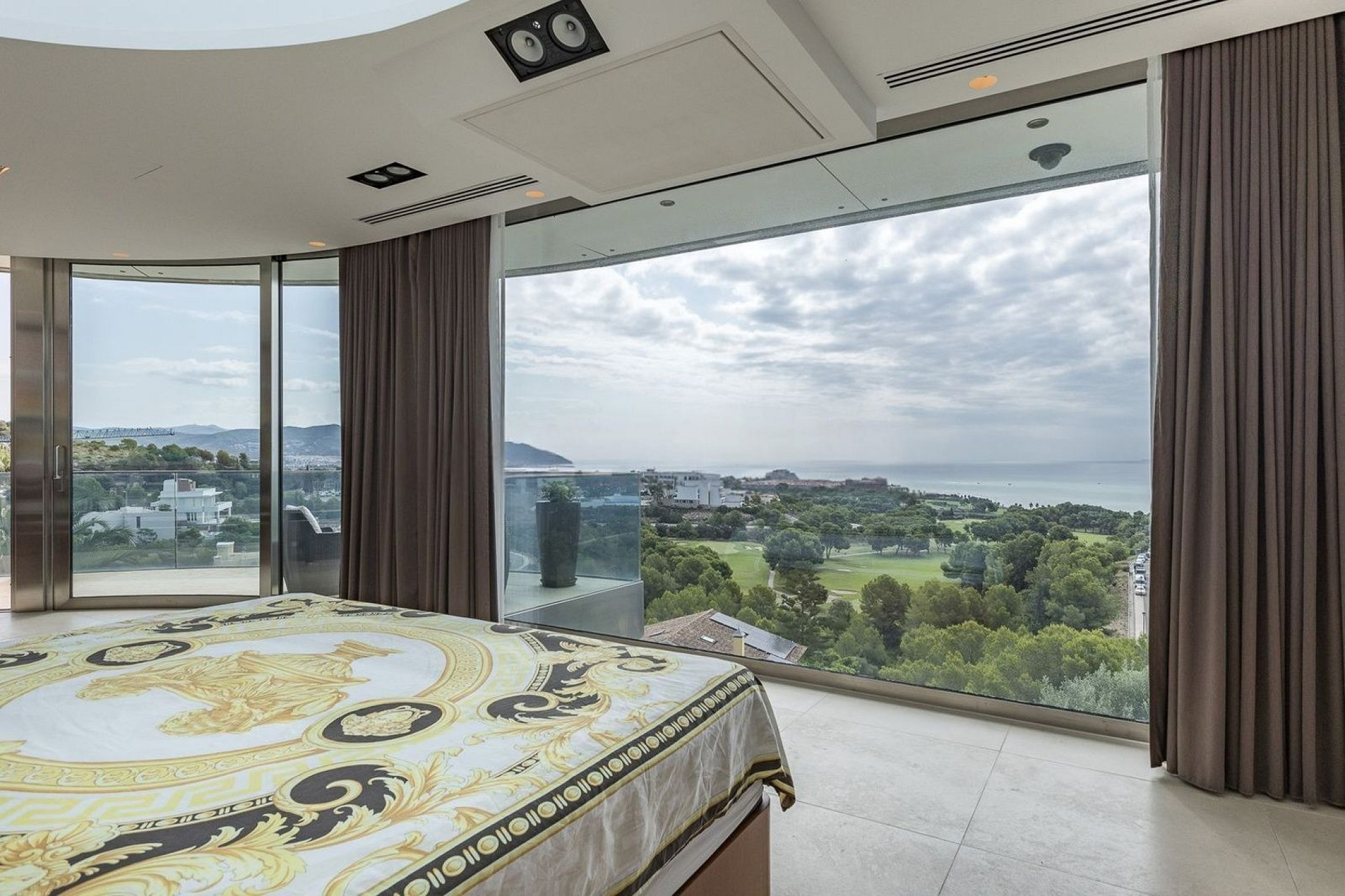 Вилла оснащена частным бассейном, джакузи, полностью оборудованным тренажёрным залом, системой сигнализации, защитными дверями и внутренним лифтом, соединяющим все этажи.