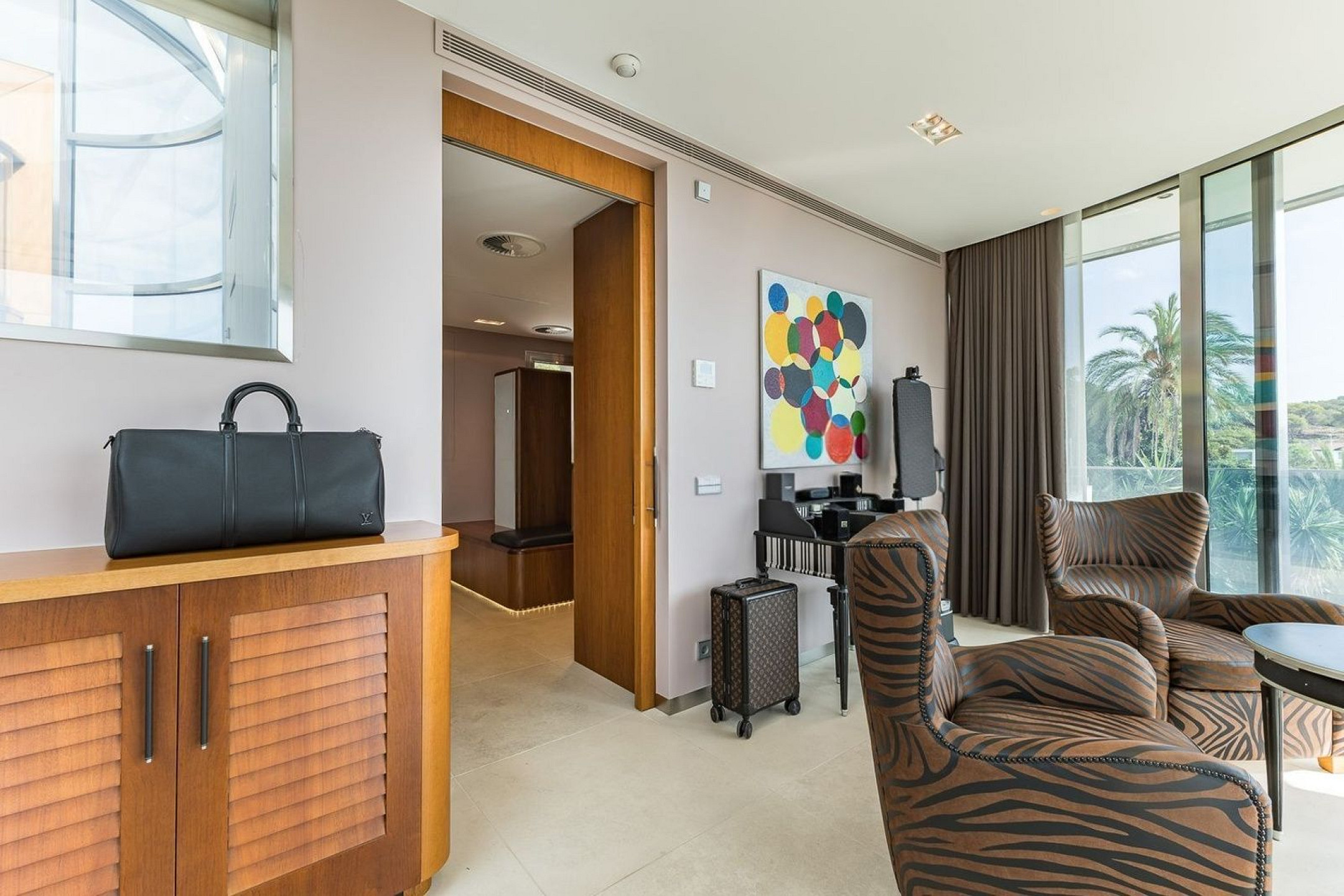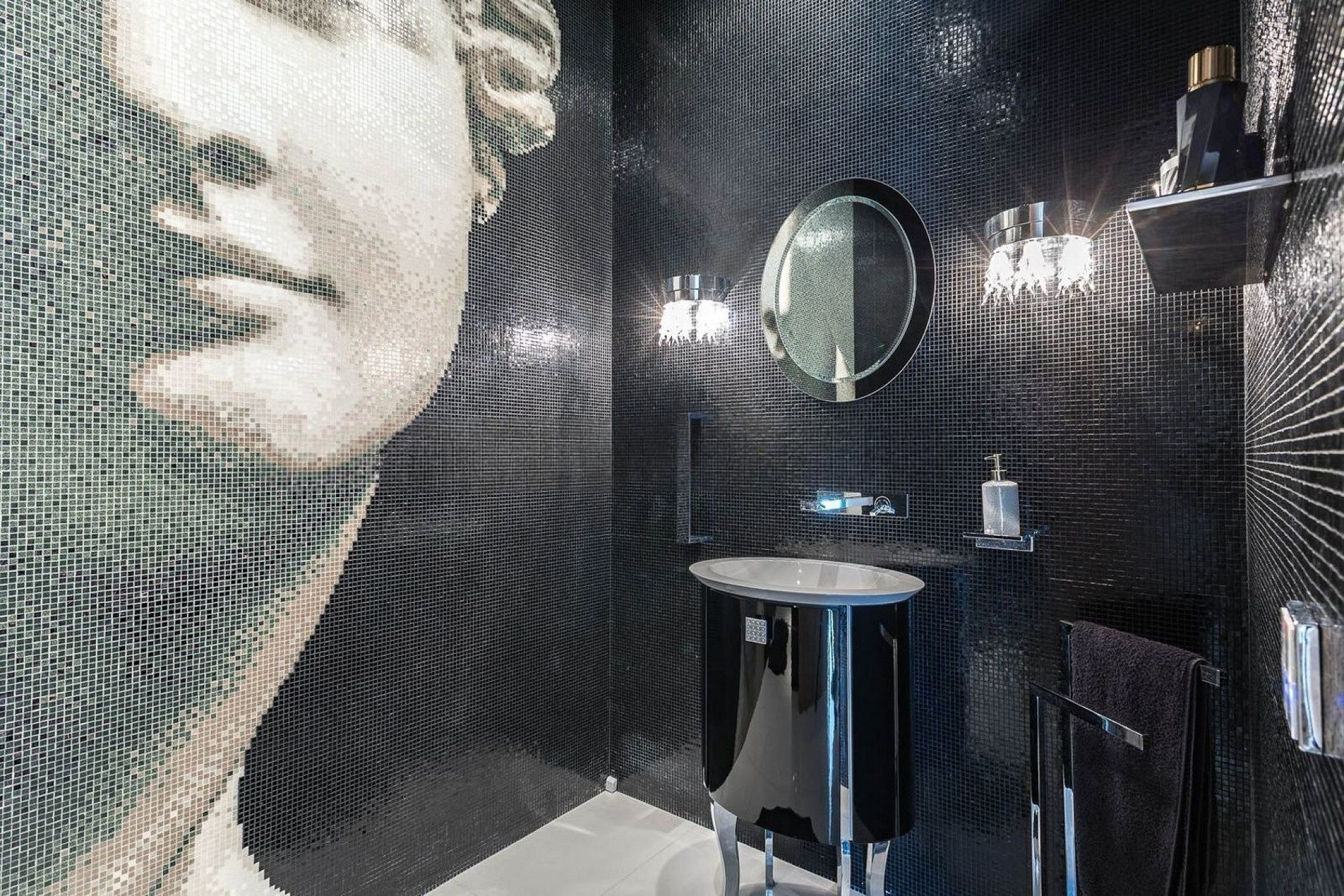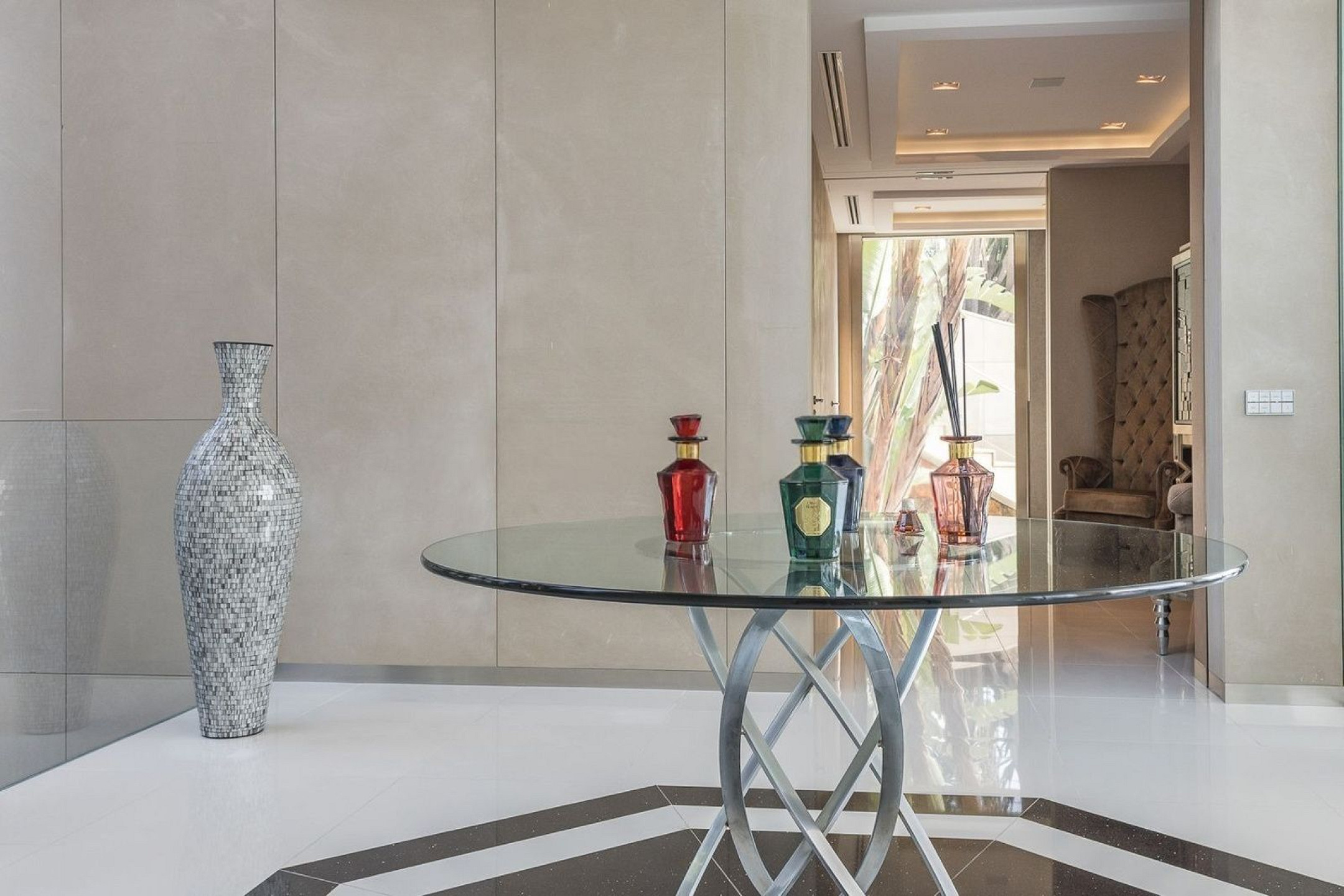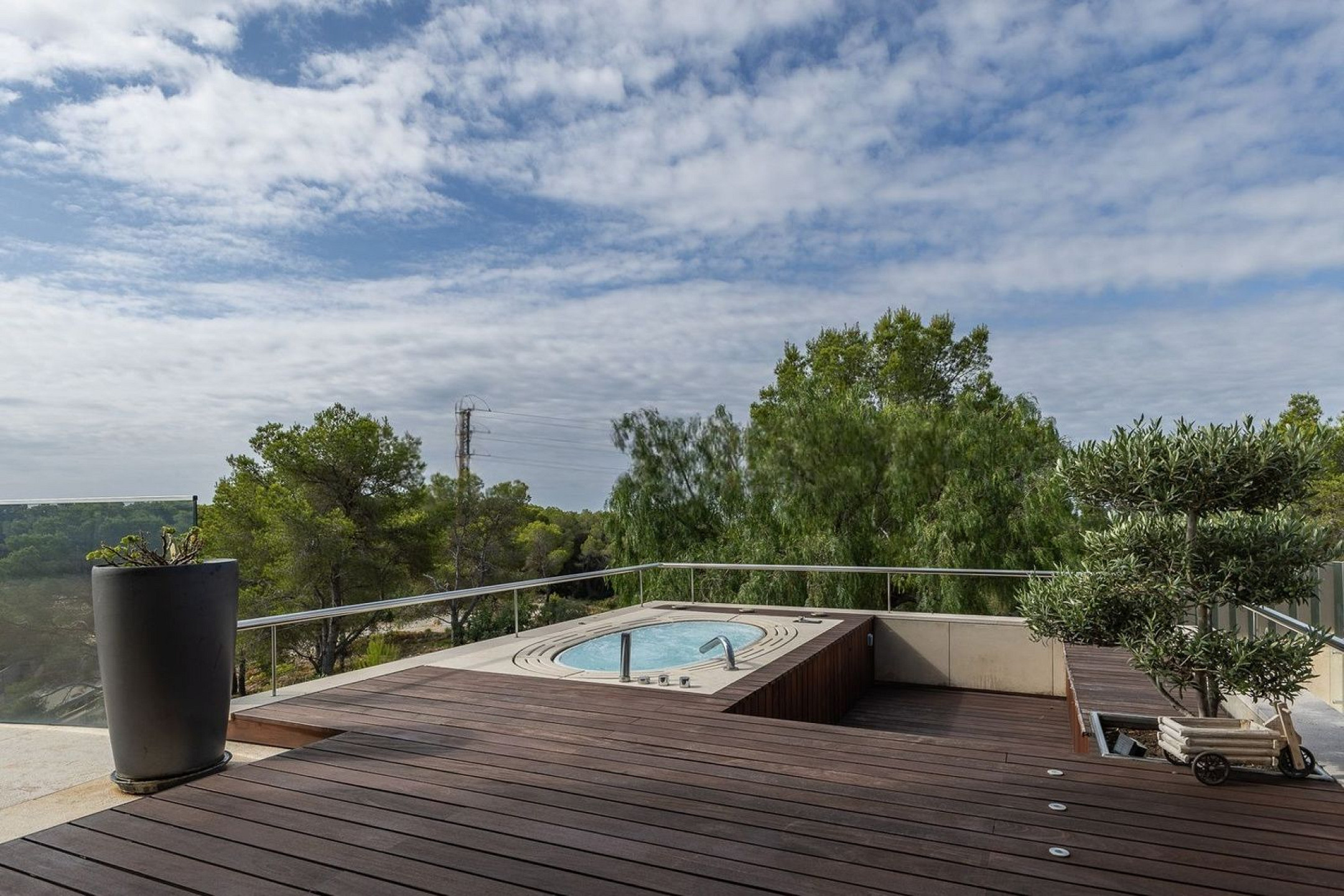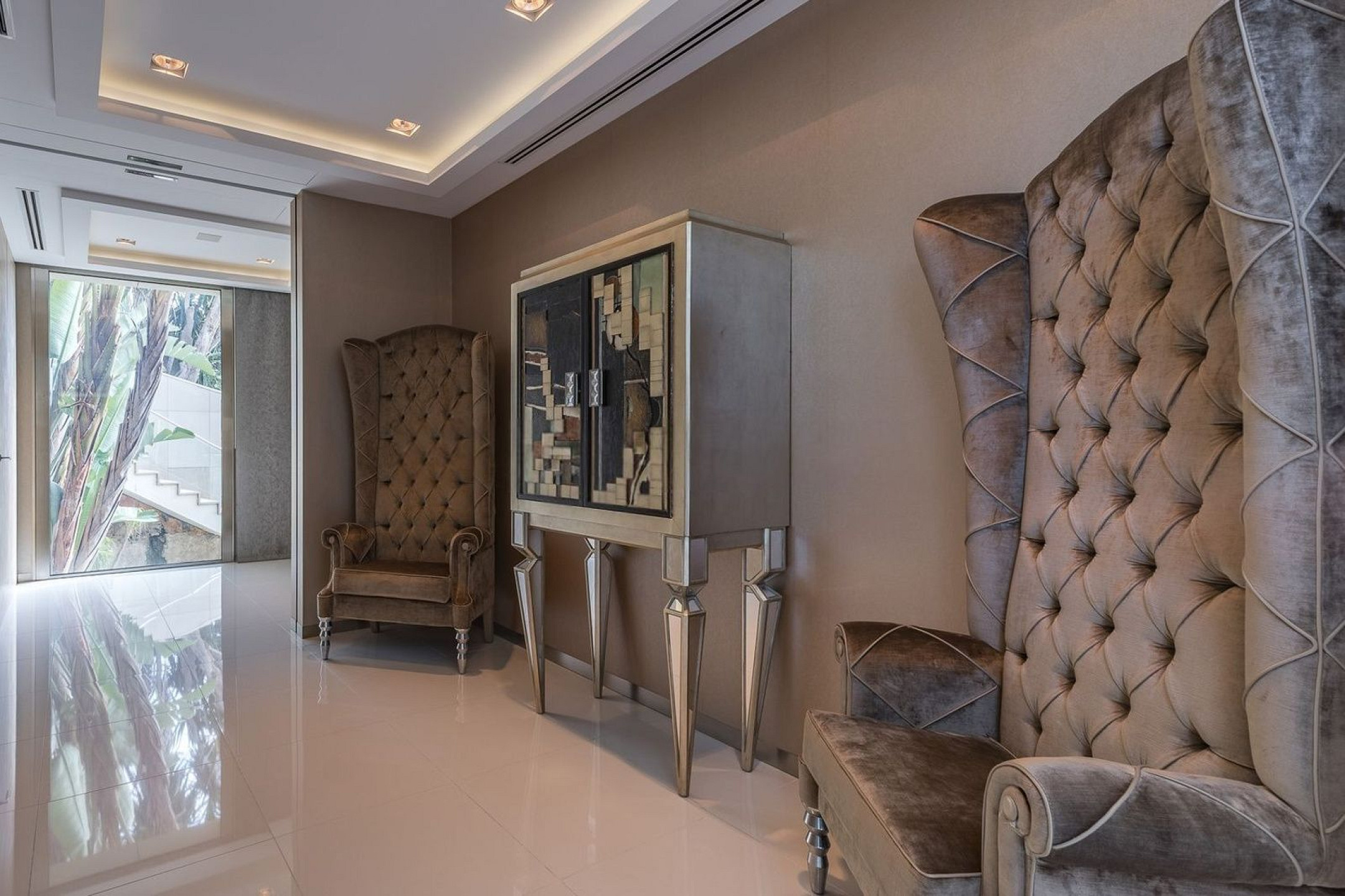 Вилла оснащена частным бассейном, джакузи, полностью оборудованным тренажёрным залом, системой сигнализации, защитными дверями и внутренним лифтом, соединяющим все этажи.