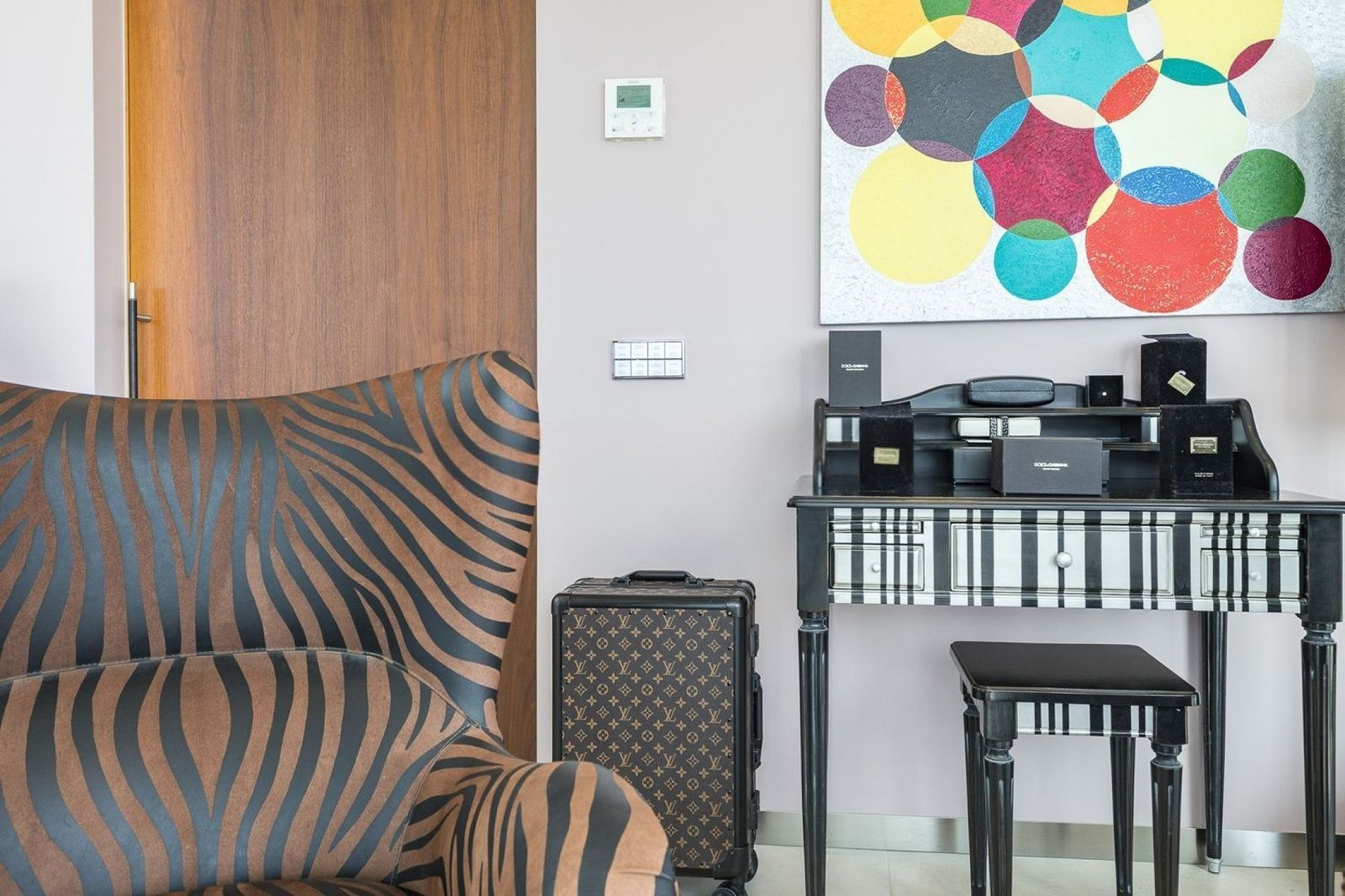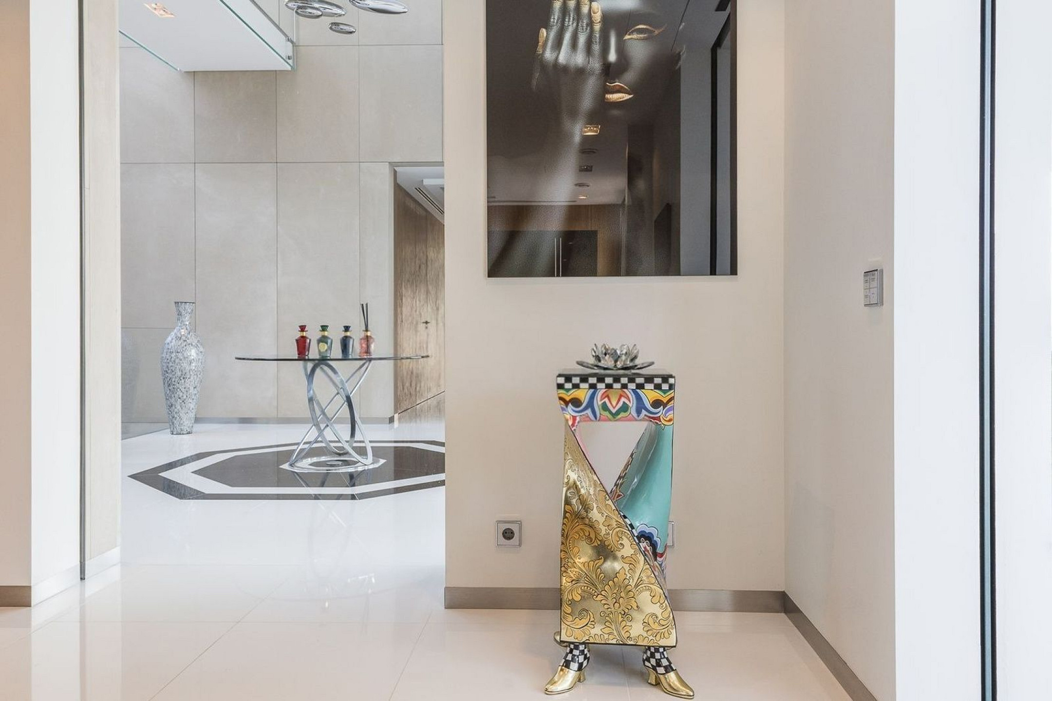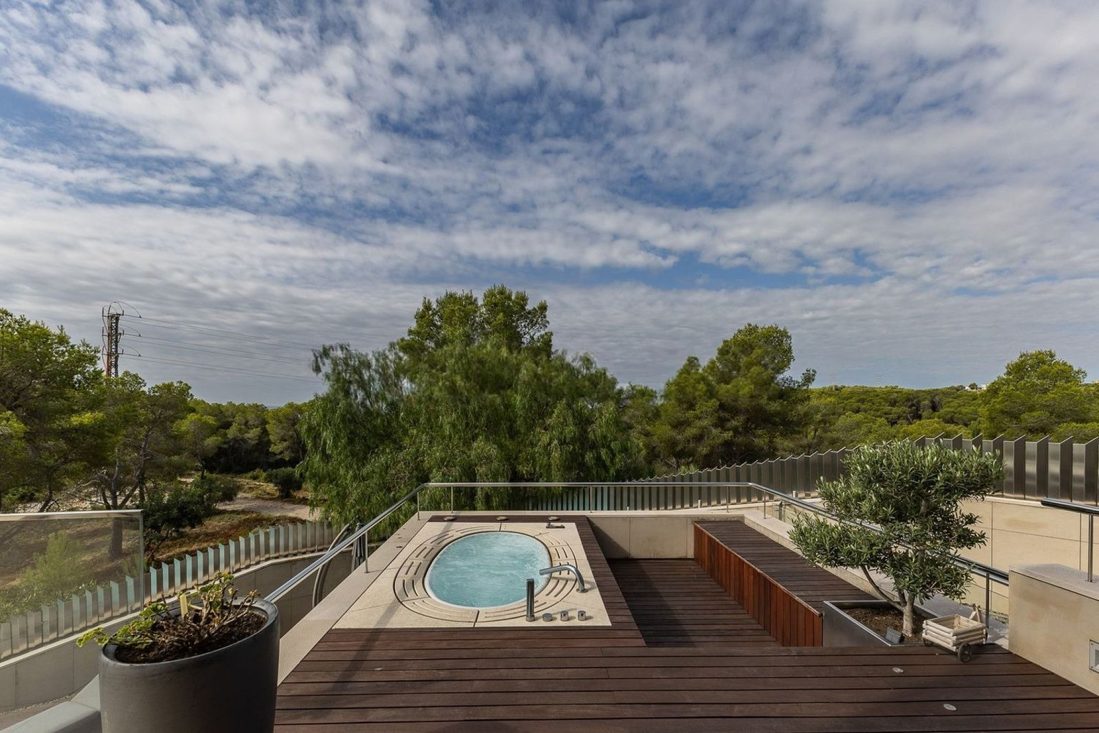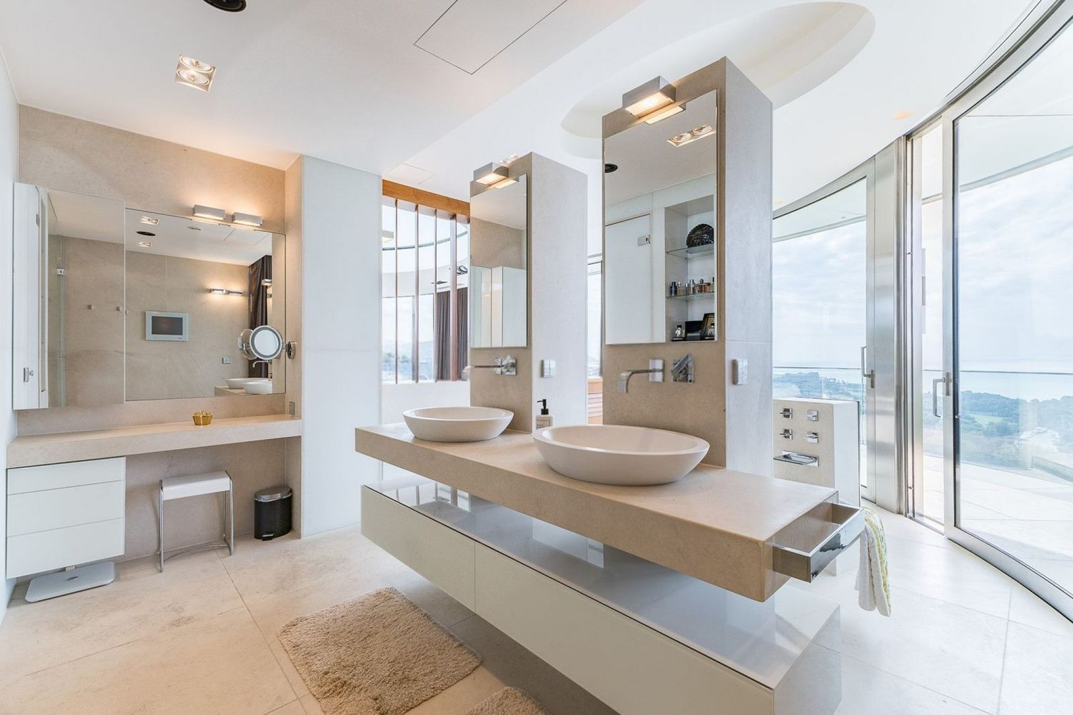 Вилла оснащена частным бассейном, джакузи, полностью оборудованным тренажёрным залом, системой сигнализации, защитными дверями и внутренним лифтом, соединяющим все этажи.