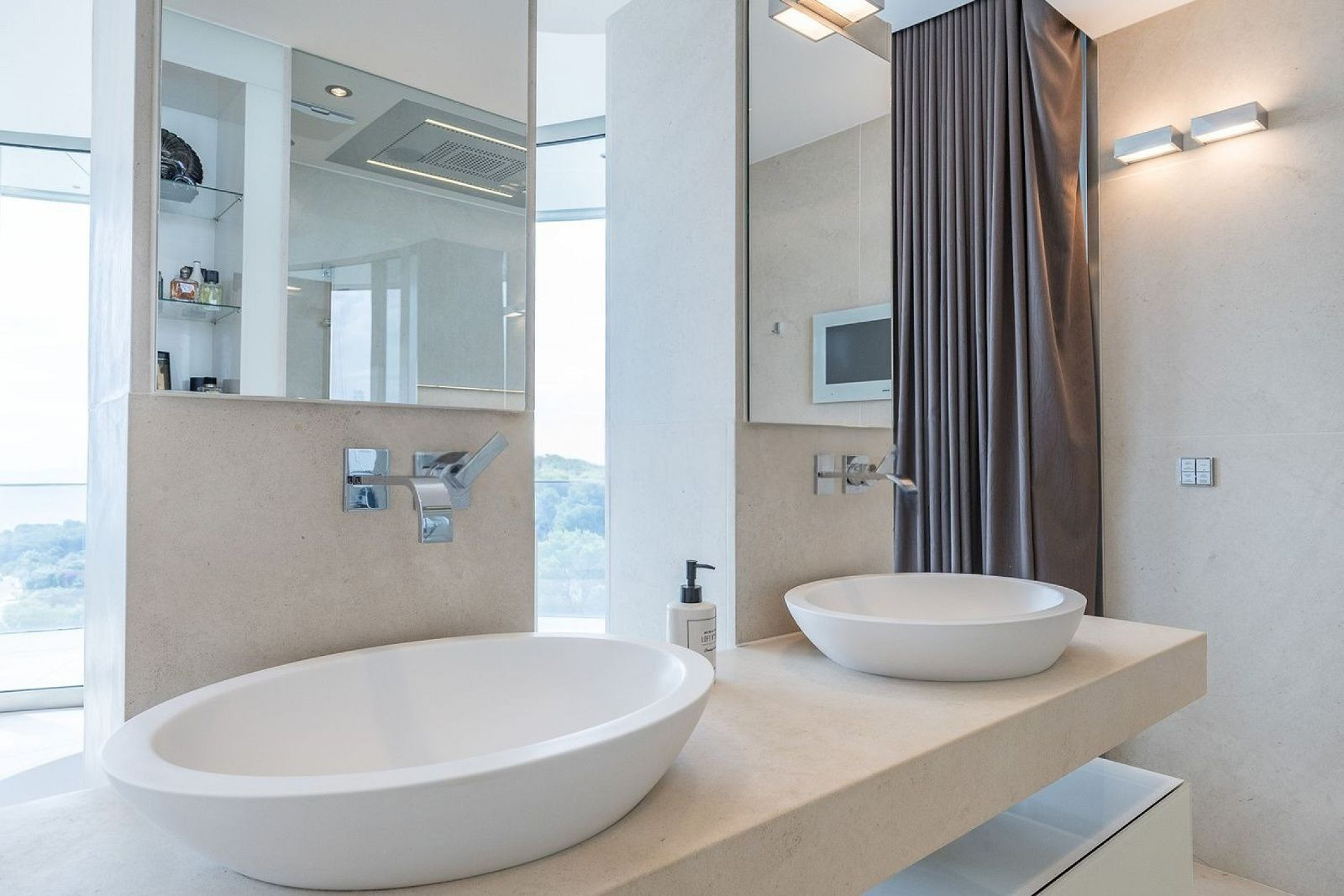 Интерьеры выполнены с использованием высококачественных материалов и элегантных отделок, придающих каждому пространству эксклюзивный характер. Открытая планировка обеспечивает естественное освещение и гармоничную связь с внешней средой.