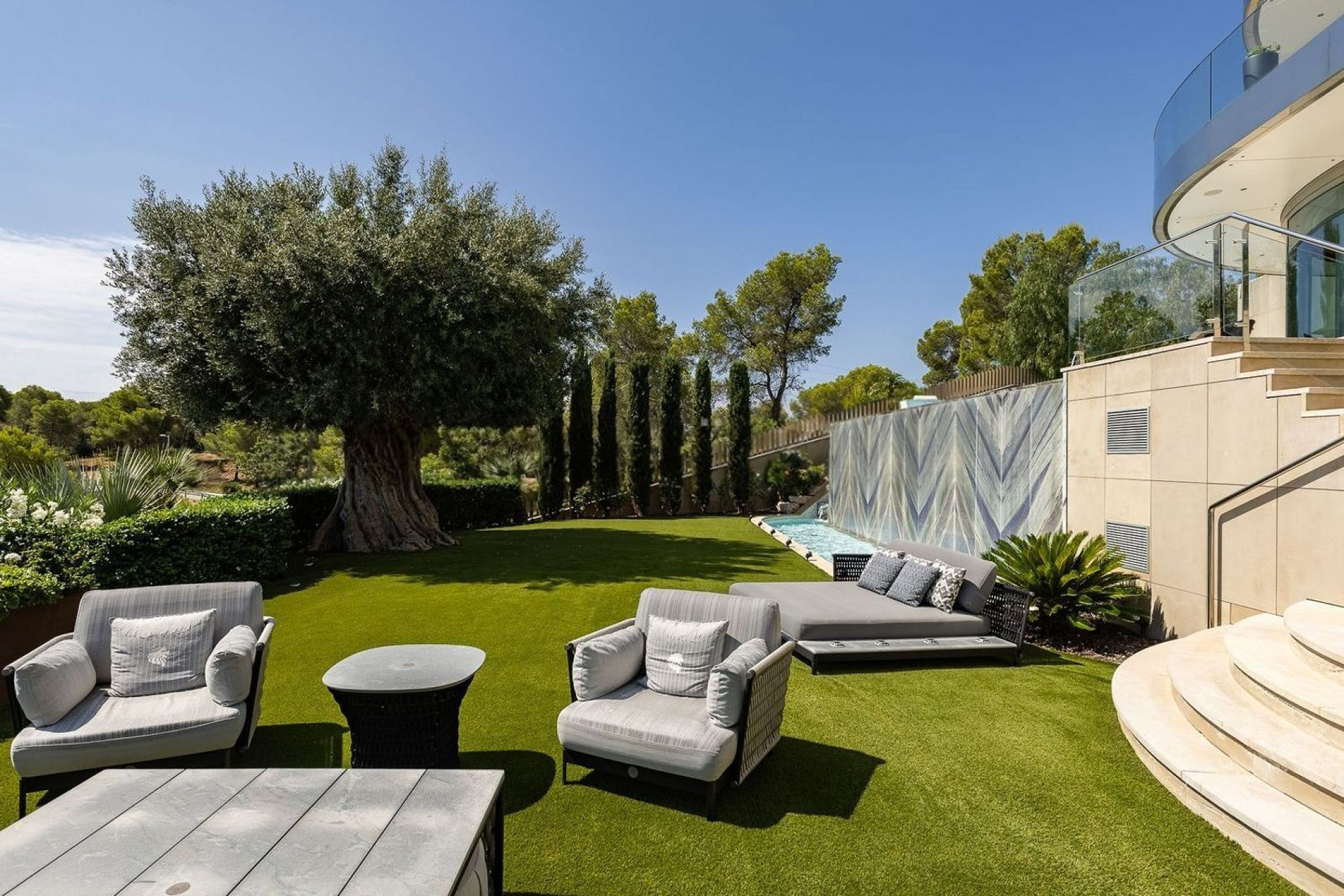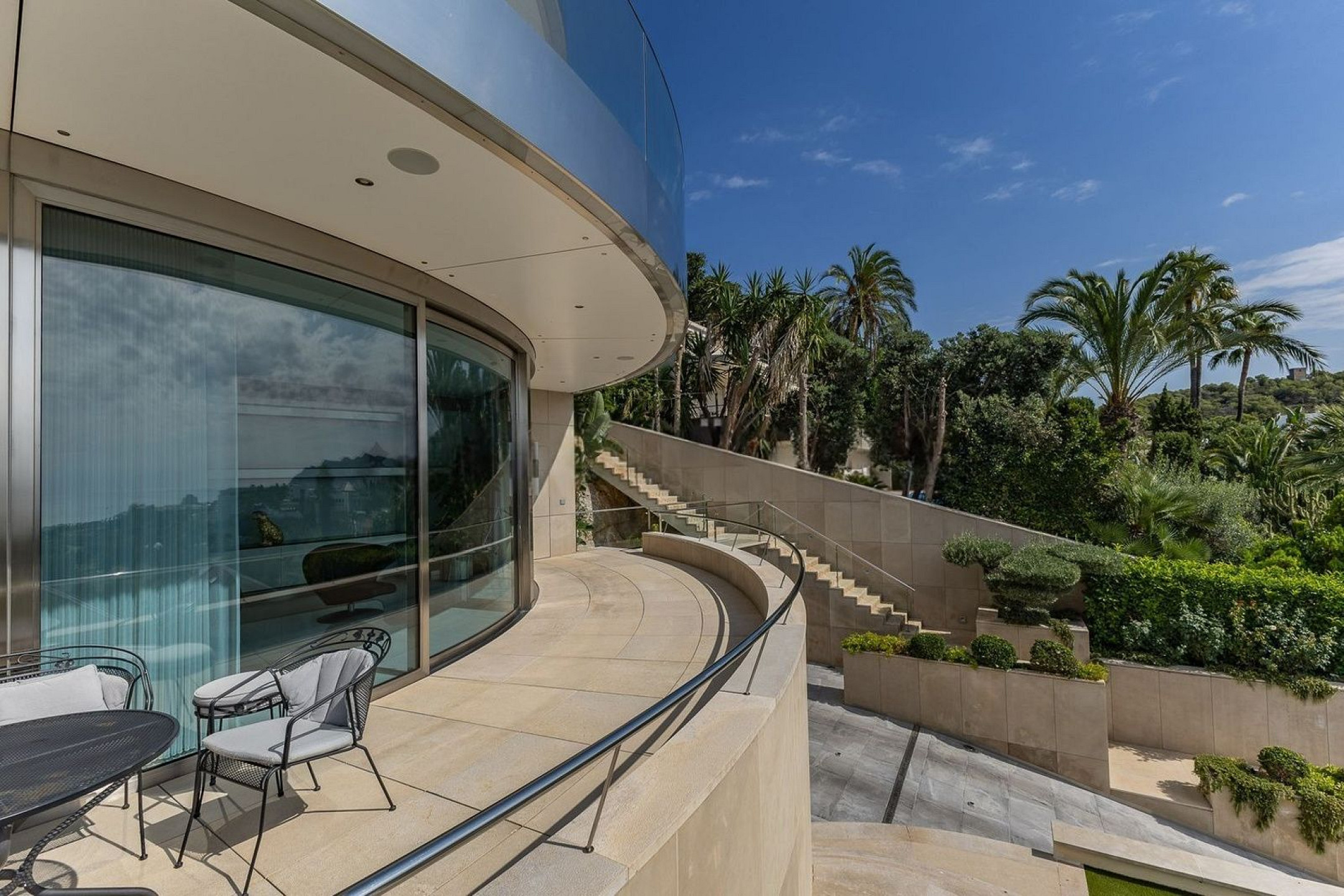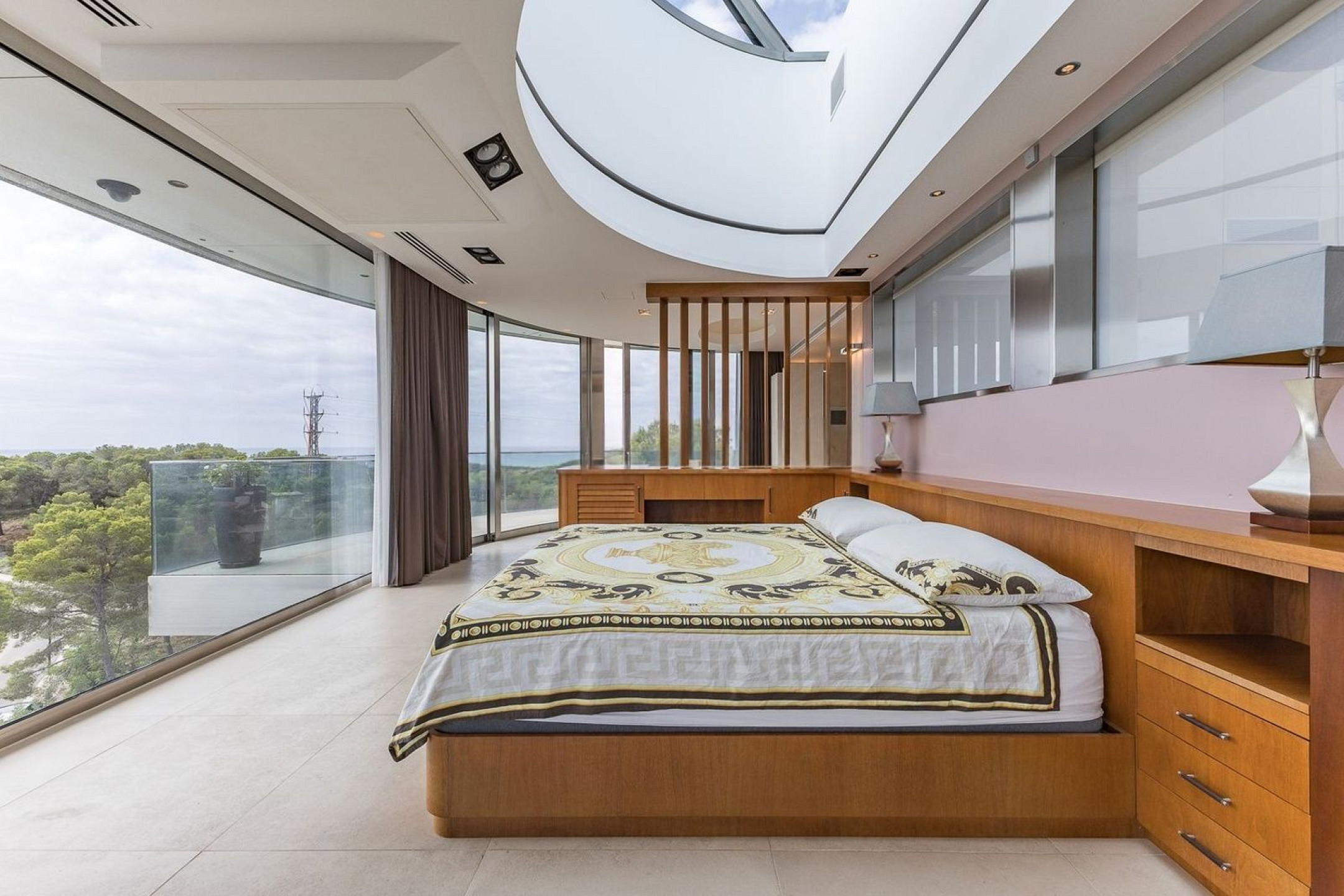 В доме пять спален и пять ванных комнат, четыре из которых en suite, а также отдельные апартаменты для гостей, обеспечивающие дополнительную приватность и удобство.