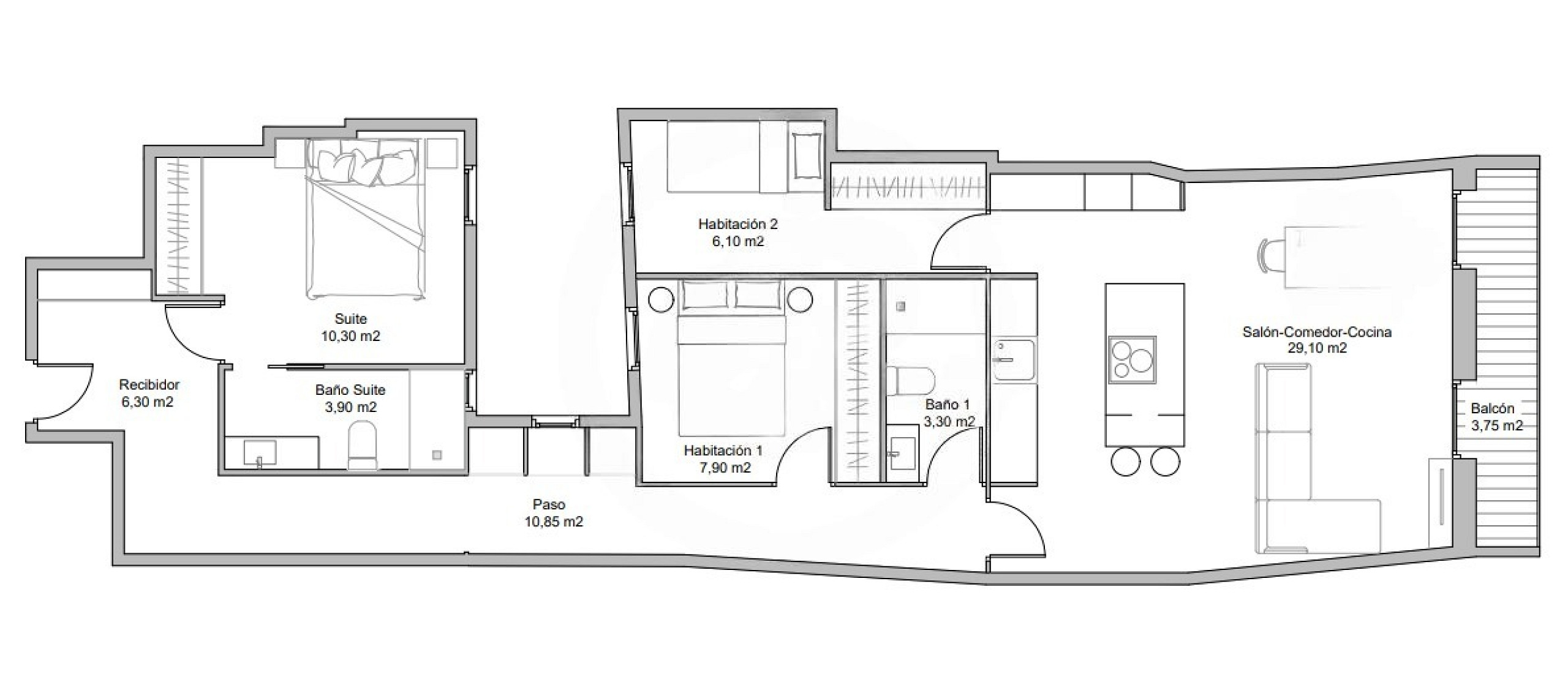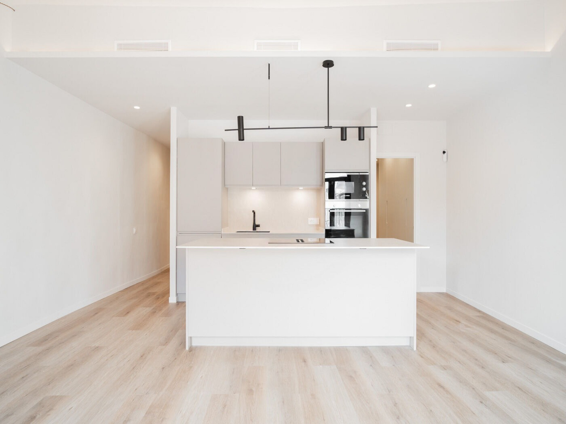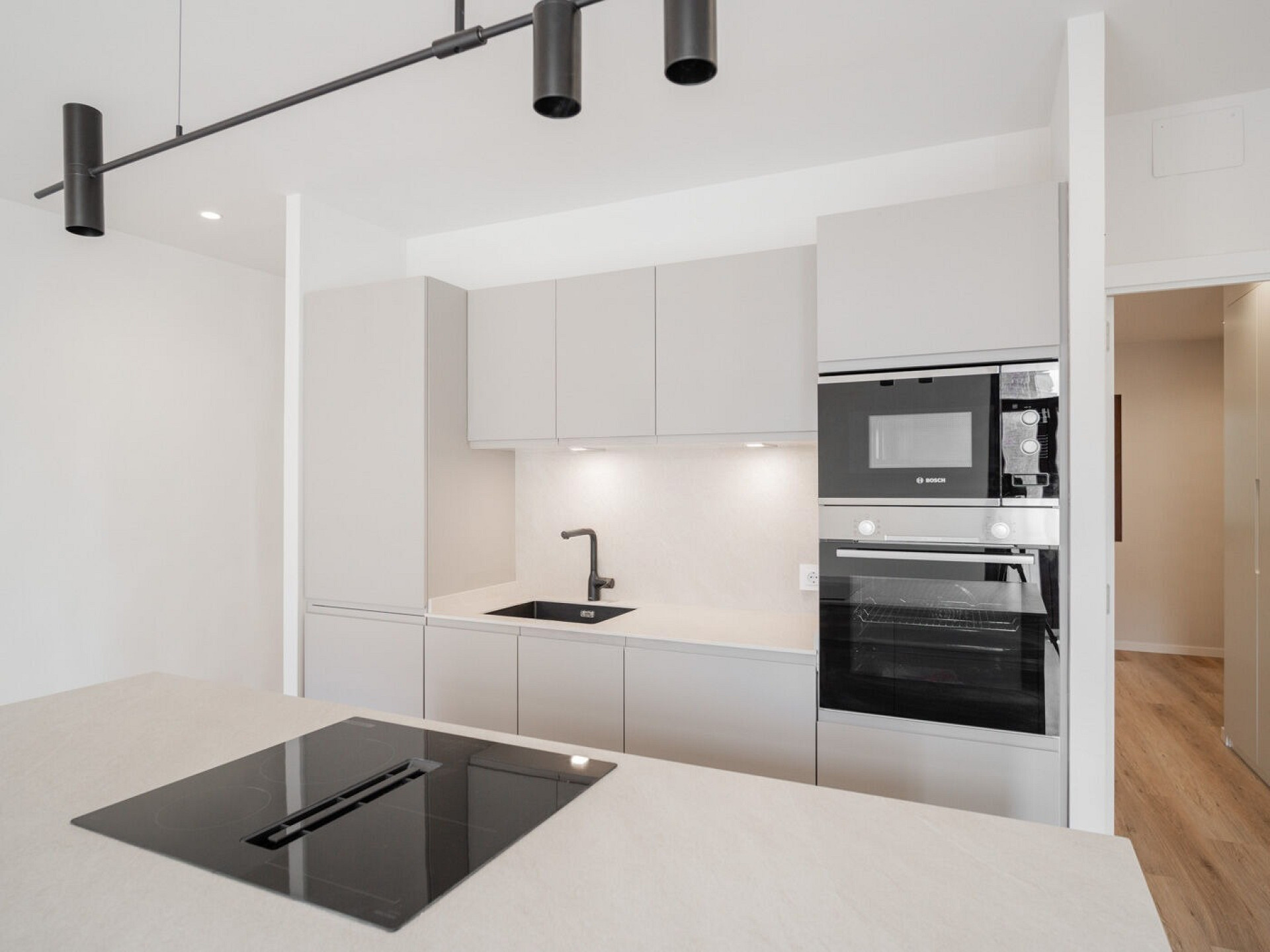 Полностью меблирована и оснащена современной техникой: просторная гостиная совмещена с кухней открытого типа, оборудованной бытовой техникой премиум-класса (варочная панель, духовка, микроволновая печь, холодильник и посудомоечная машина).