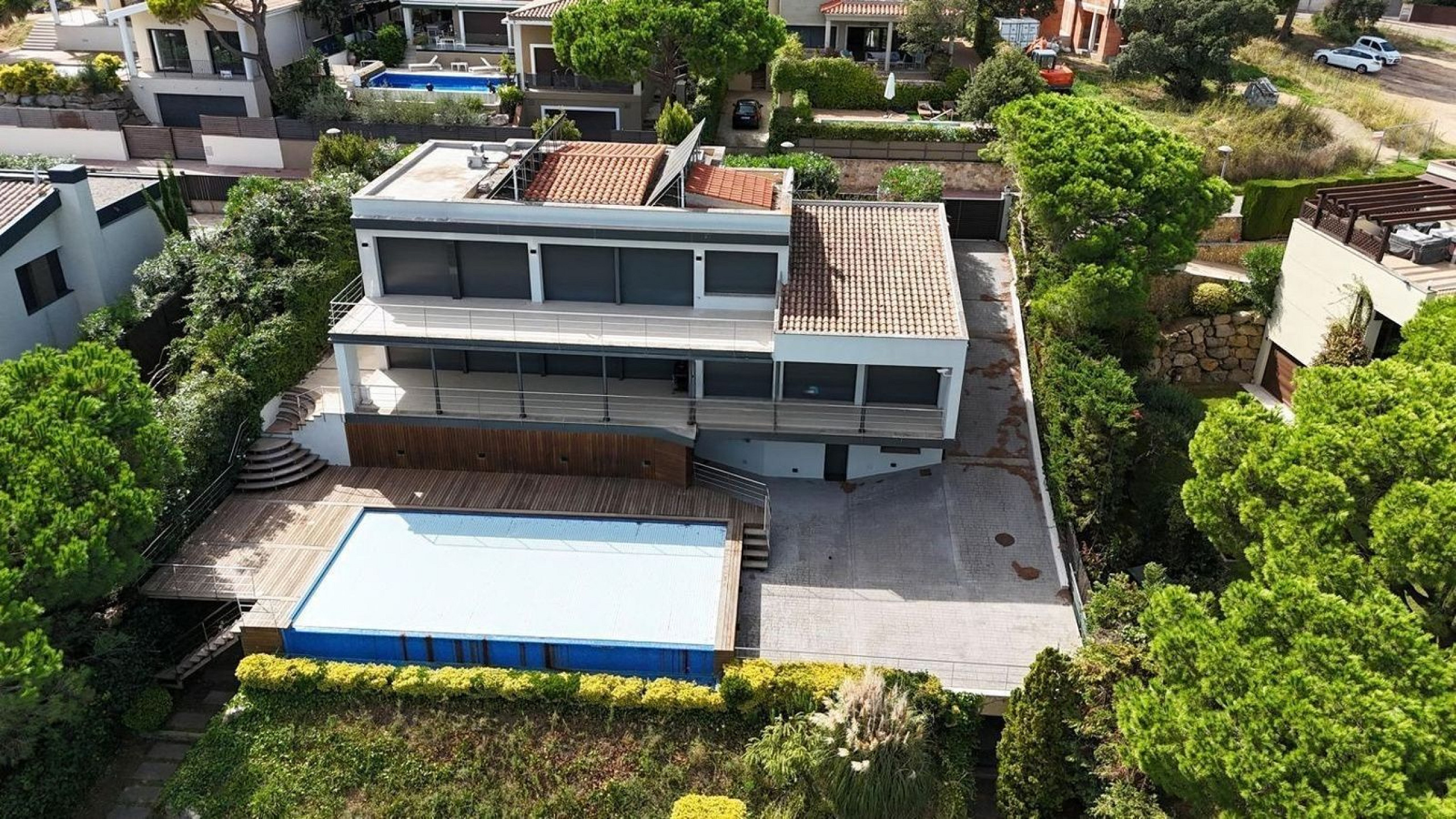 Частный сад и бассейн создают уединённое пространство для отдыха. Солнечные панели, газовое отопление и система кондиционирования обеспечивают комфорт в течение всего года.