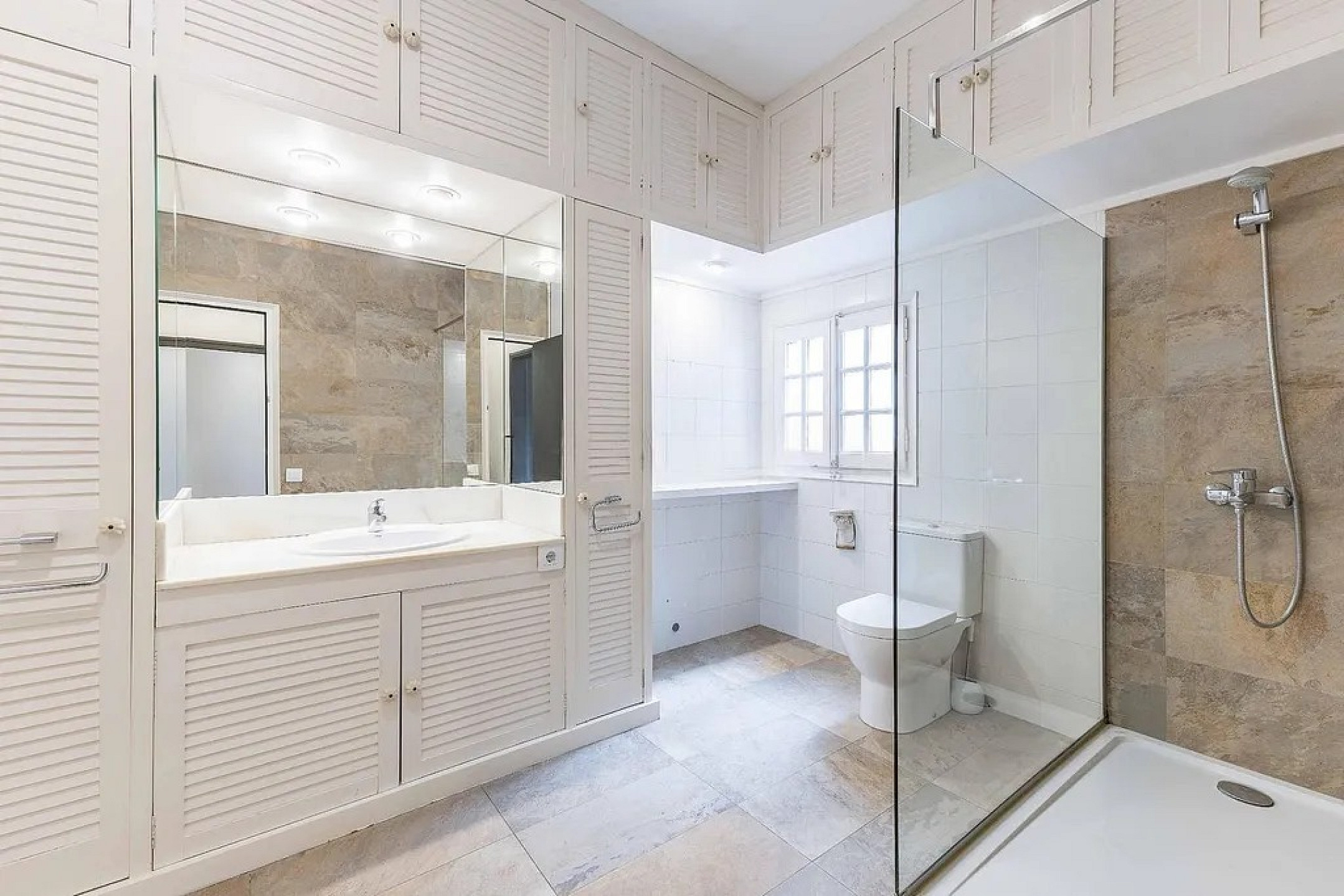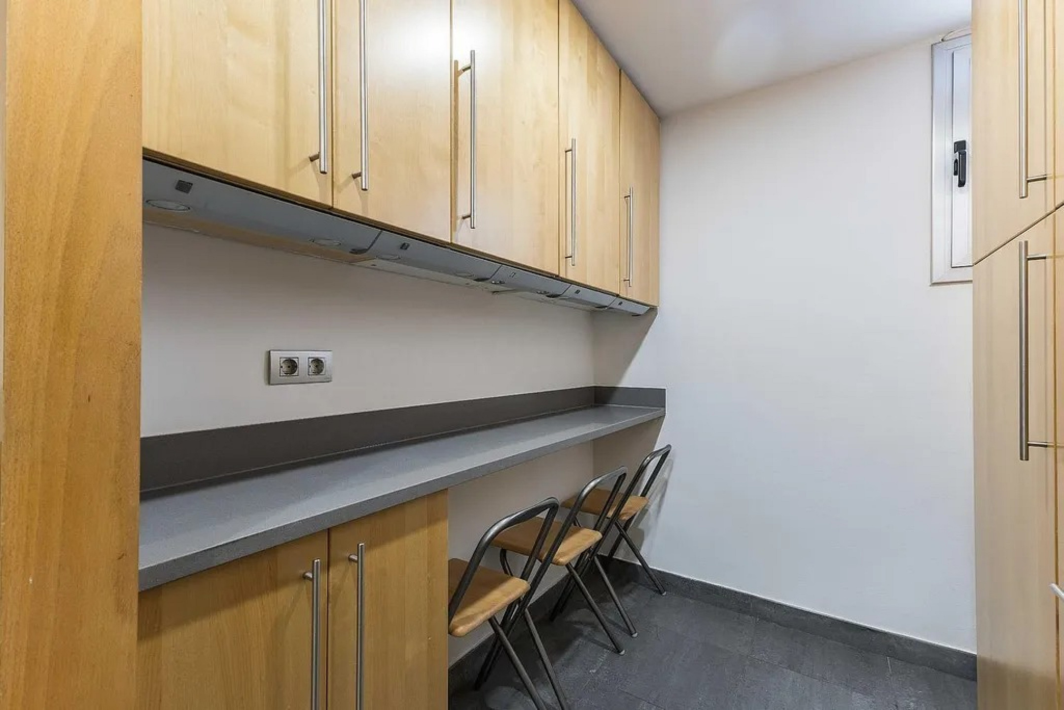 Полностью внешняя и очень светлая квартира включает просторную гостиную-столовую, разделённую на две зоны, где огромные окна открывают виды на сады Can Senillosa. Паркетный пол придаёт уют, а атмосфера спокойствия и тишины создаёт ощущение уединения в самом сердце города.