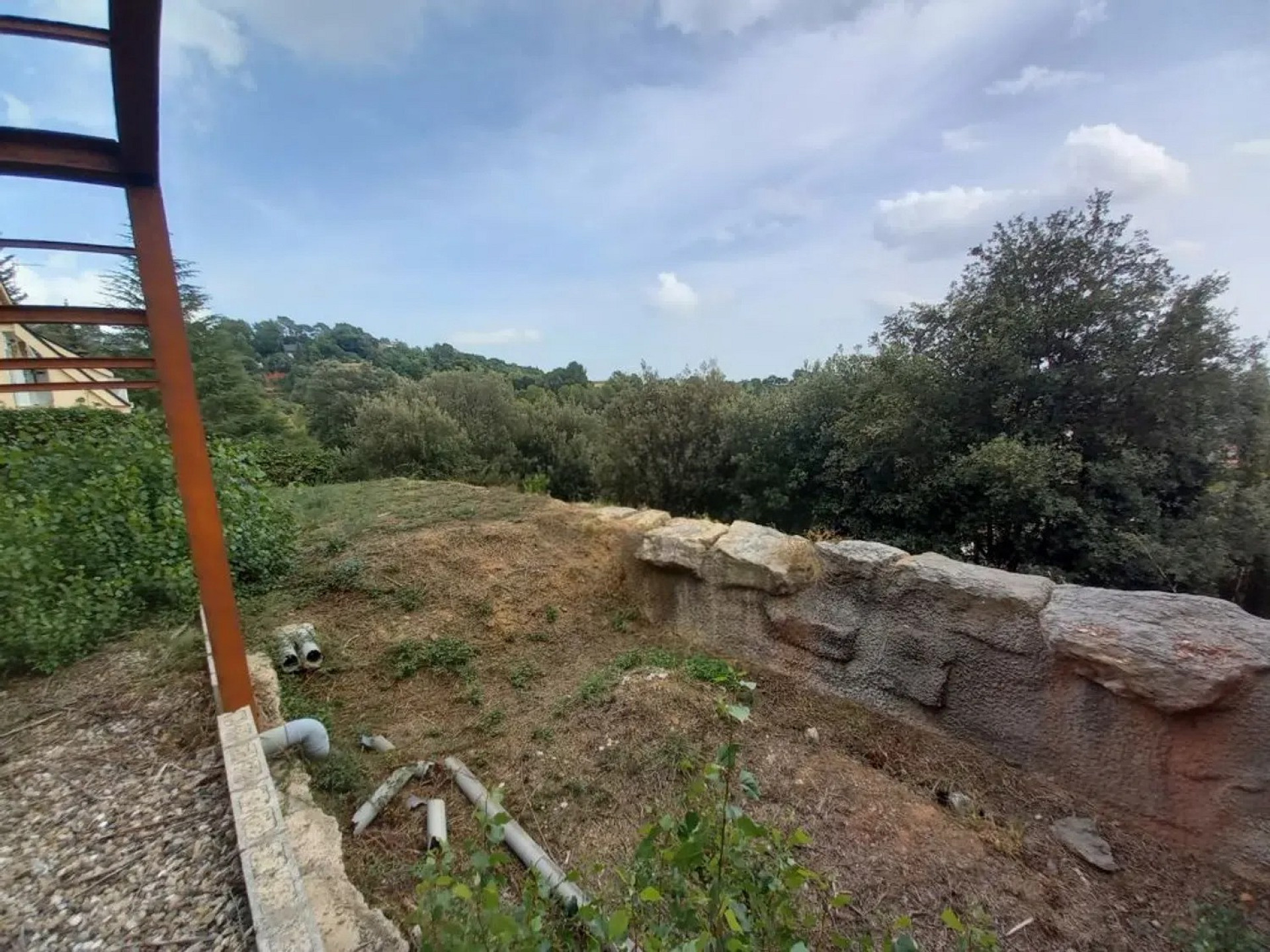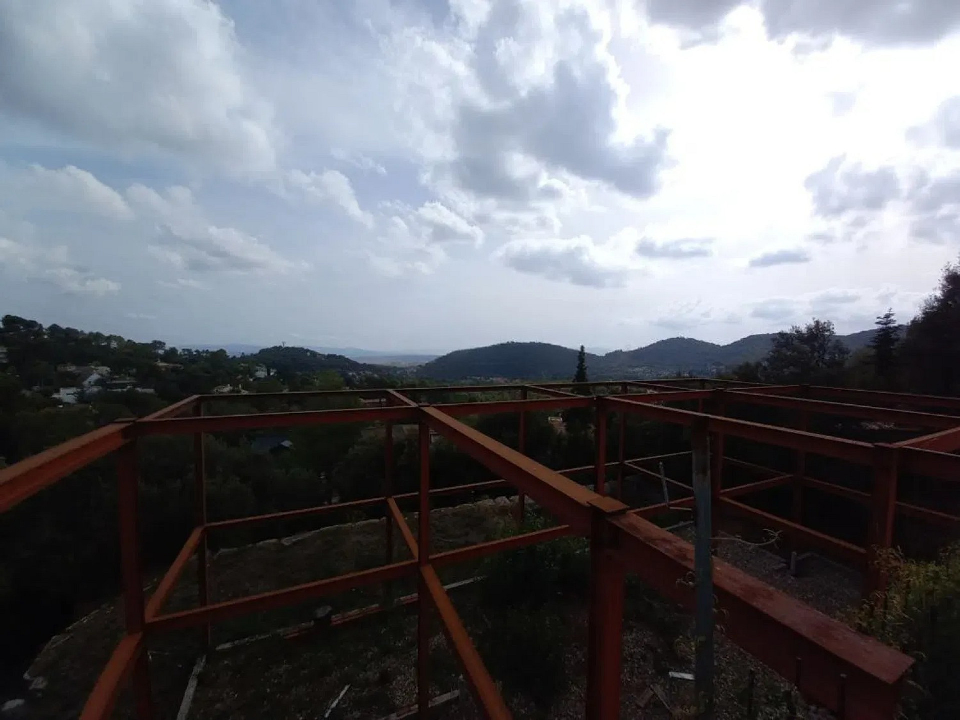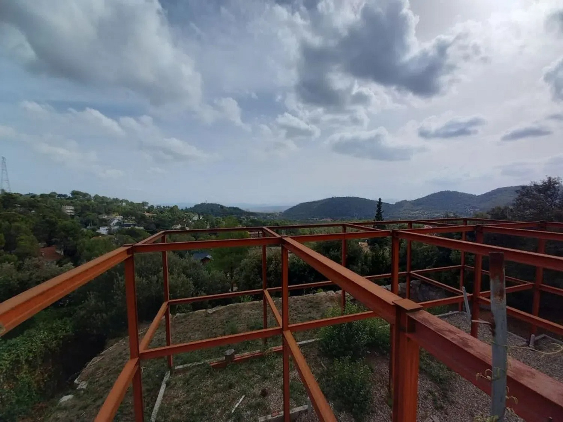 Участок площадью 900 м² с уклоном и прекрасным панорамным видом. На территории уже выполнены земляные работы и возведена металлическая конструкция с бетонной стеной, готовая для продолжения строительства дома.