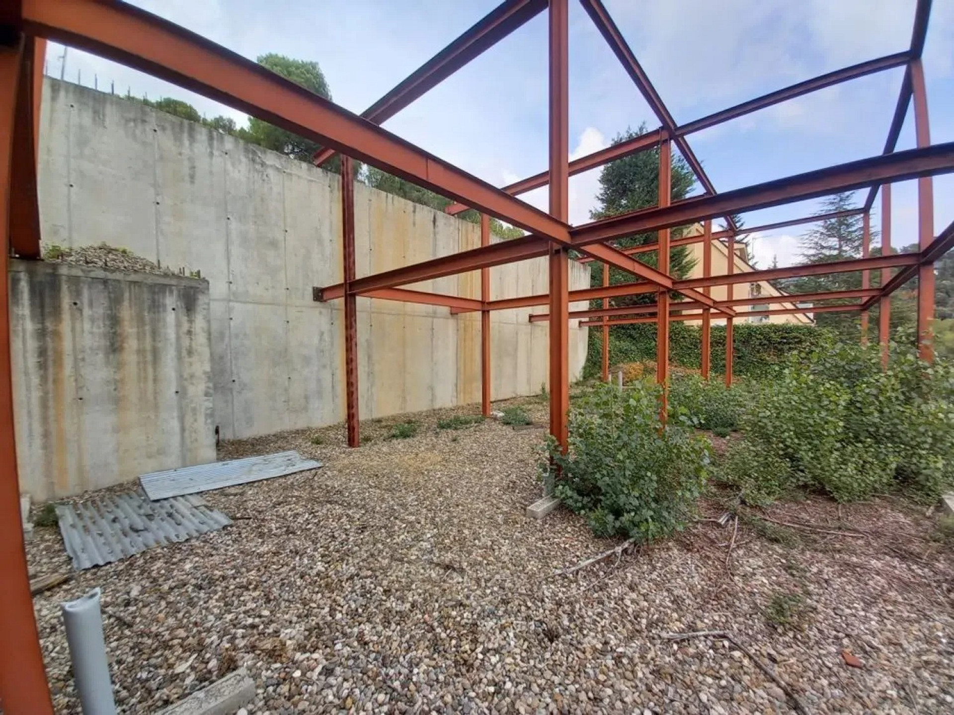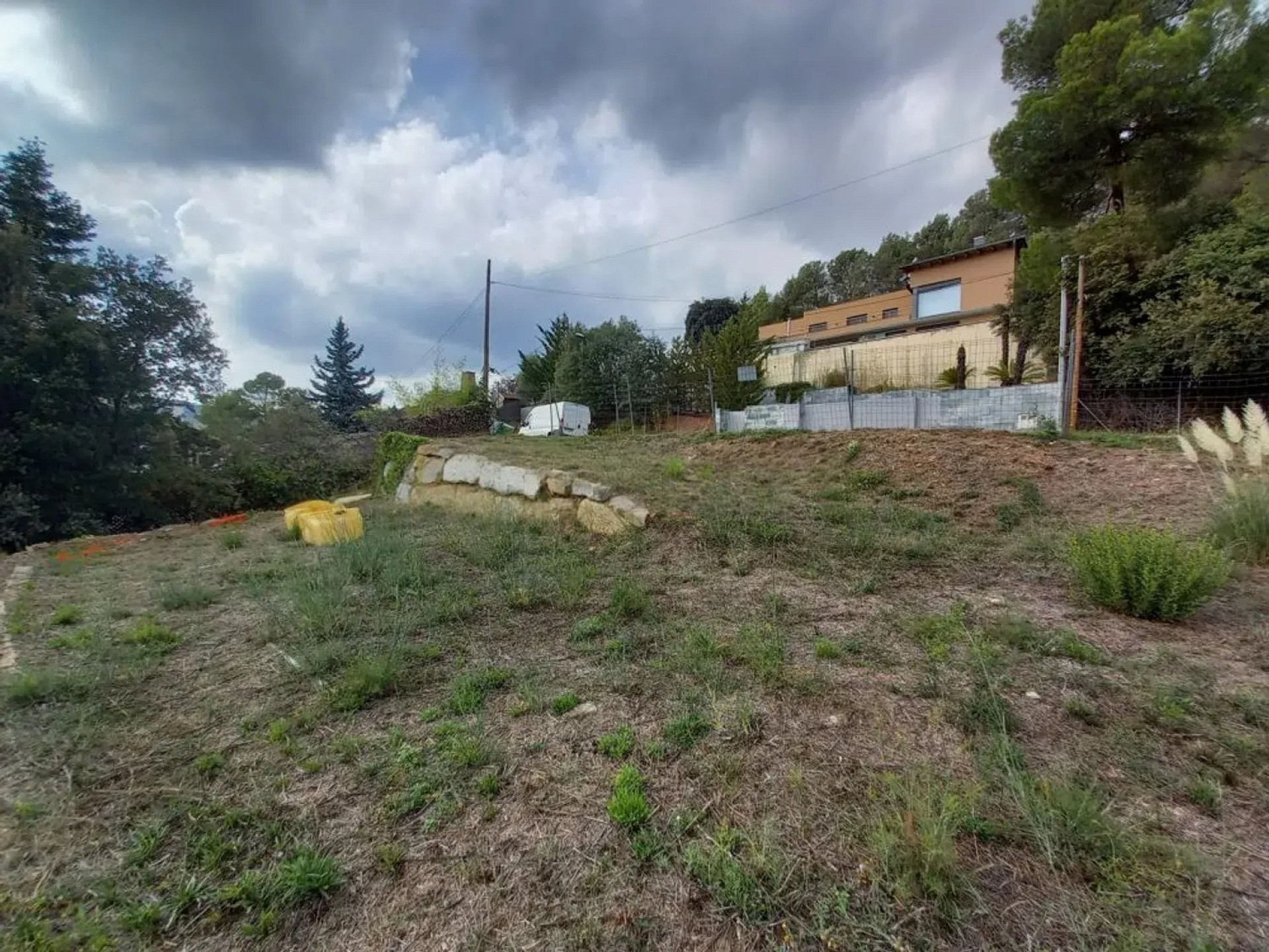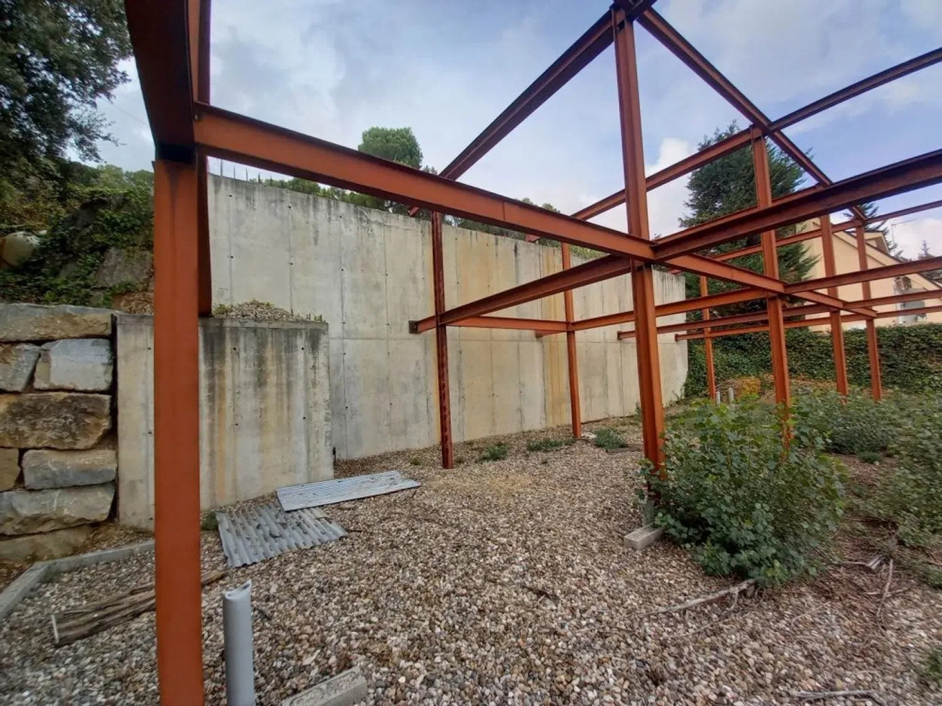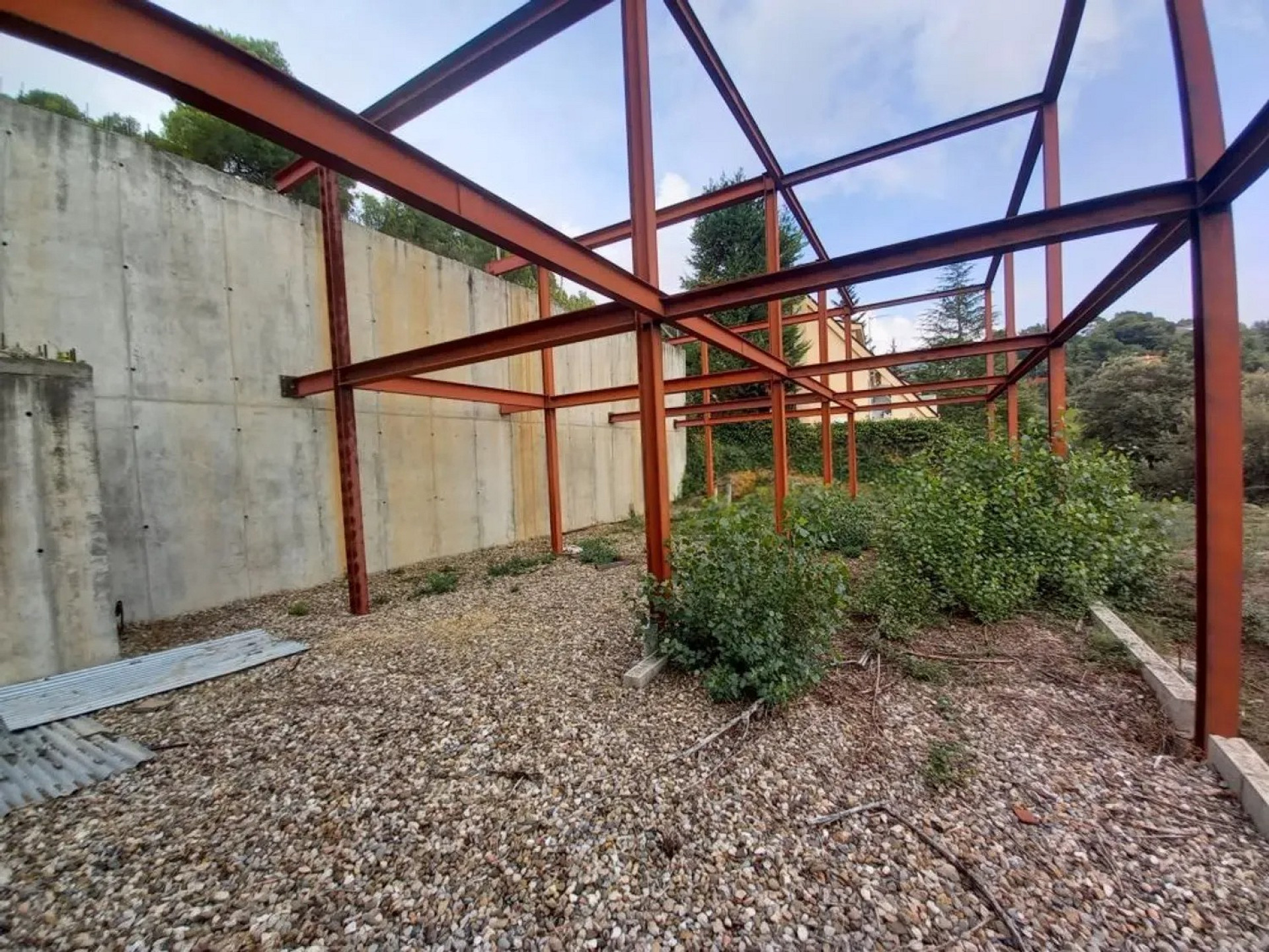 Участок площадью 900 м² с уклоном и прекрасным панорамным видом. На территории уже выполнены земляные работы и возведена металлическая конструкция с бетонной стеной, готовая для продолжения строительства дома.