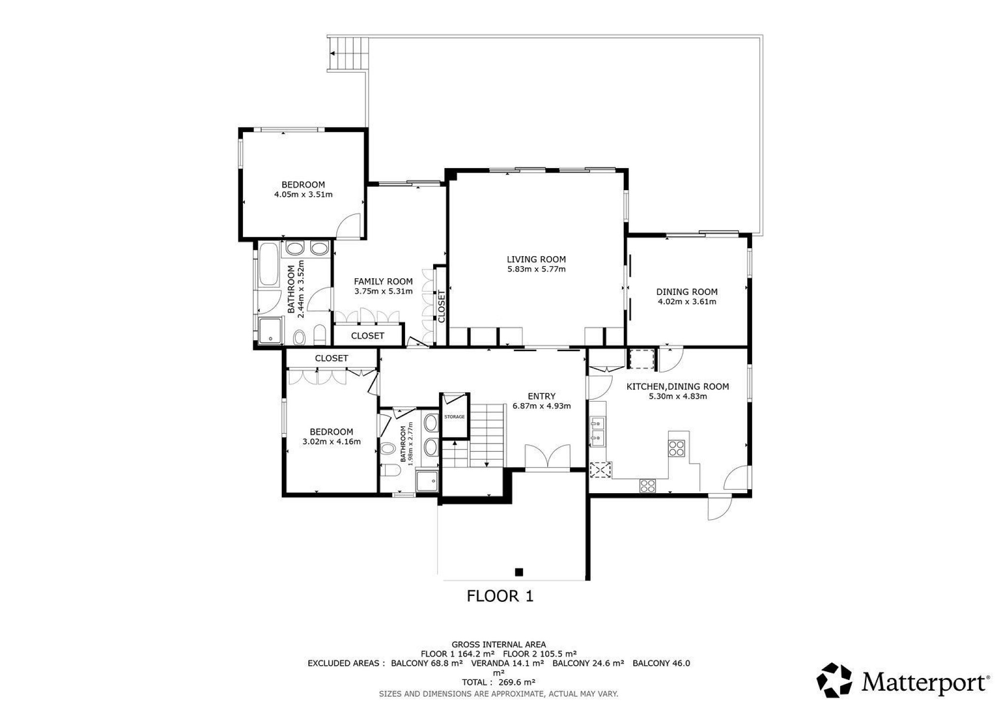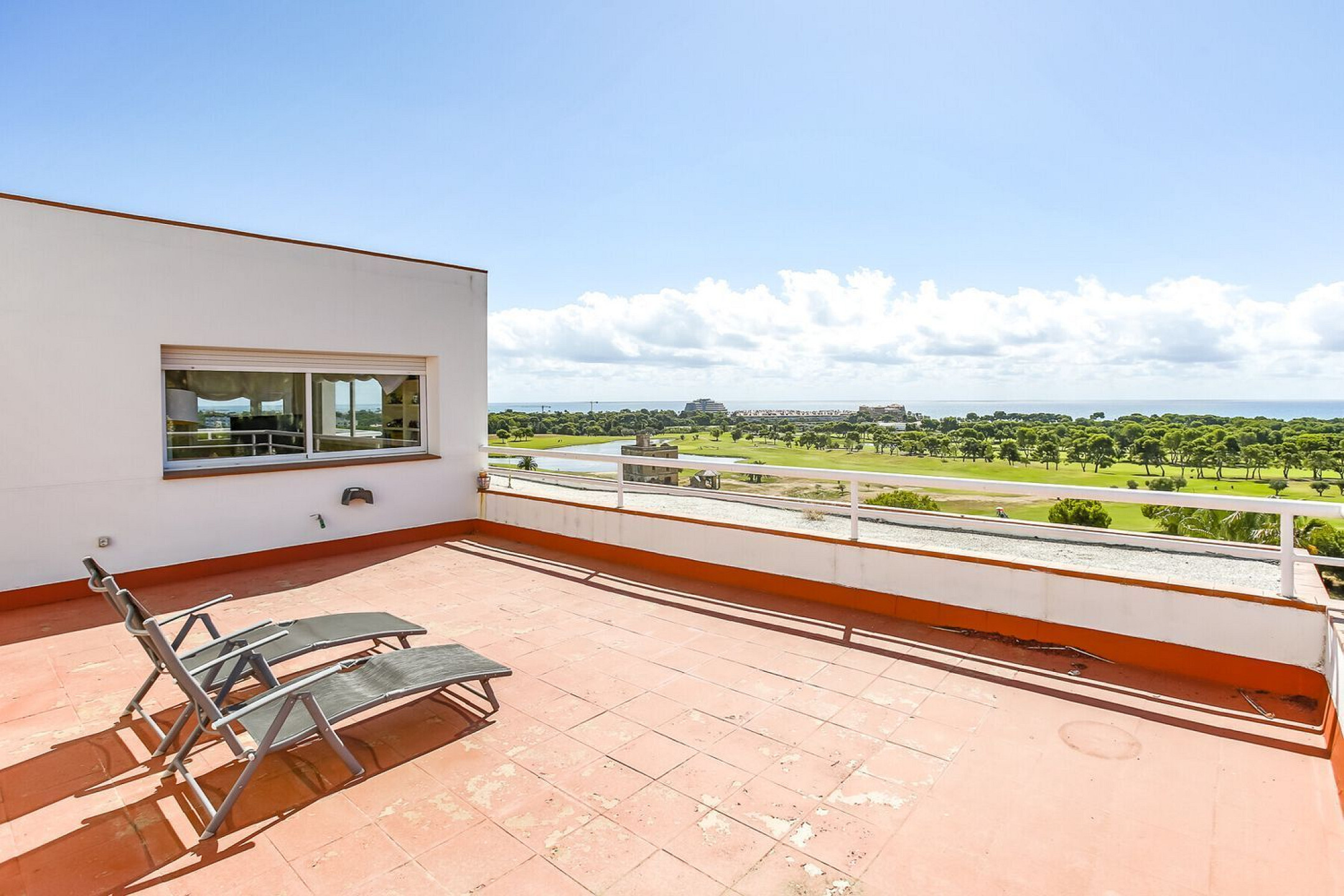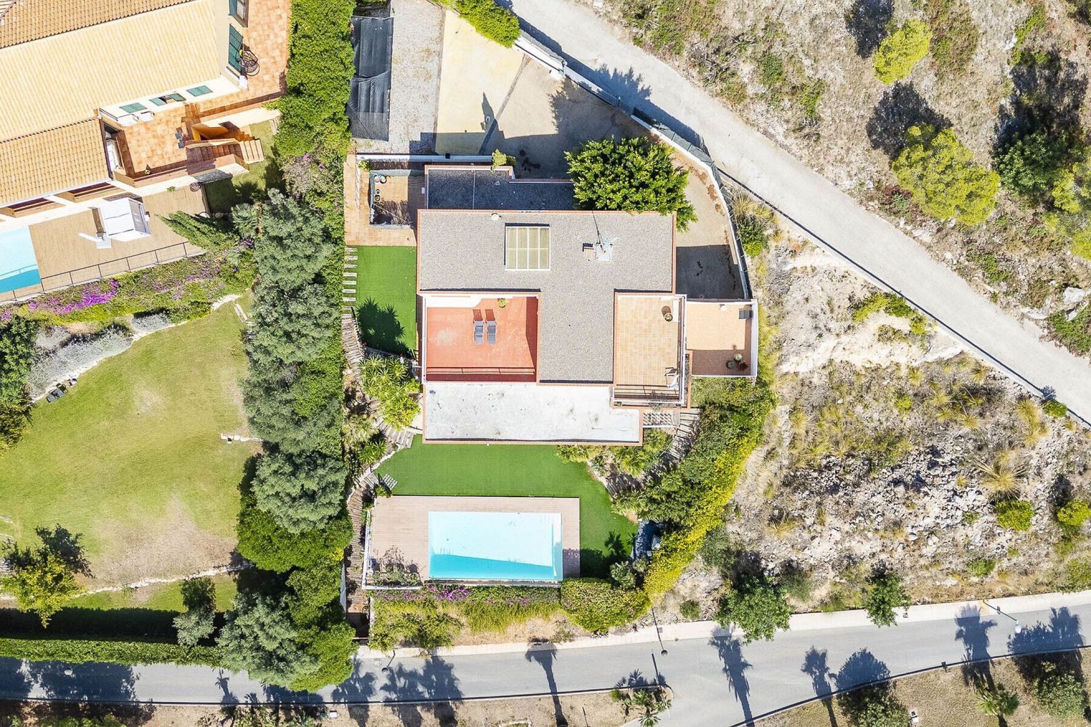 Внешнее пространство включает просторную крытую террасу с обеденной зоной и зоной отдыха, идеально подходящую для круглогодичного использования.
